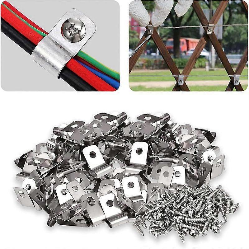 Luxora 100PCS Stainless Steel Wire Fence Clamps with Screws, Used to Secure Wire Welding to Wood, Metal