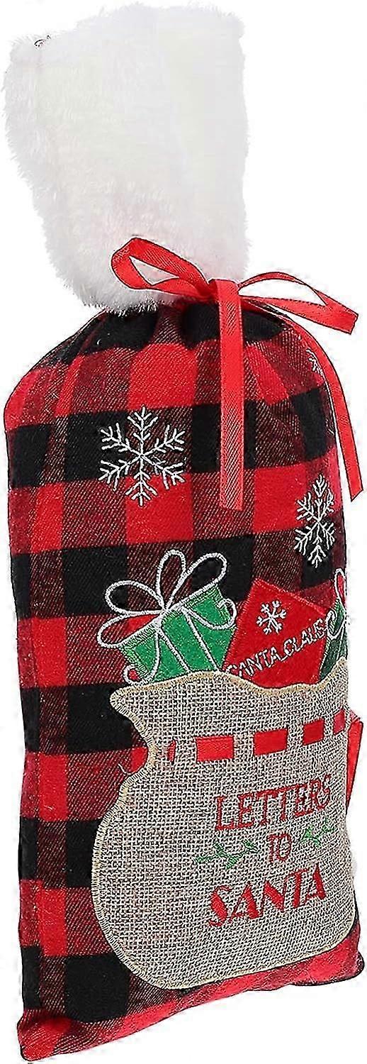 Christmas wine bottle bag with embroidered checkered design for festive decor