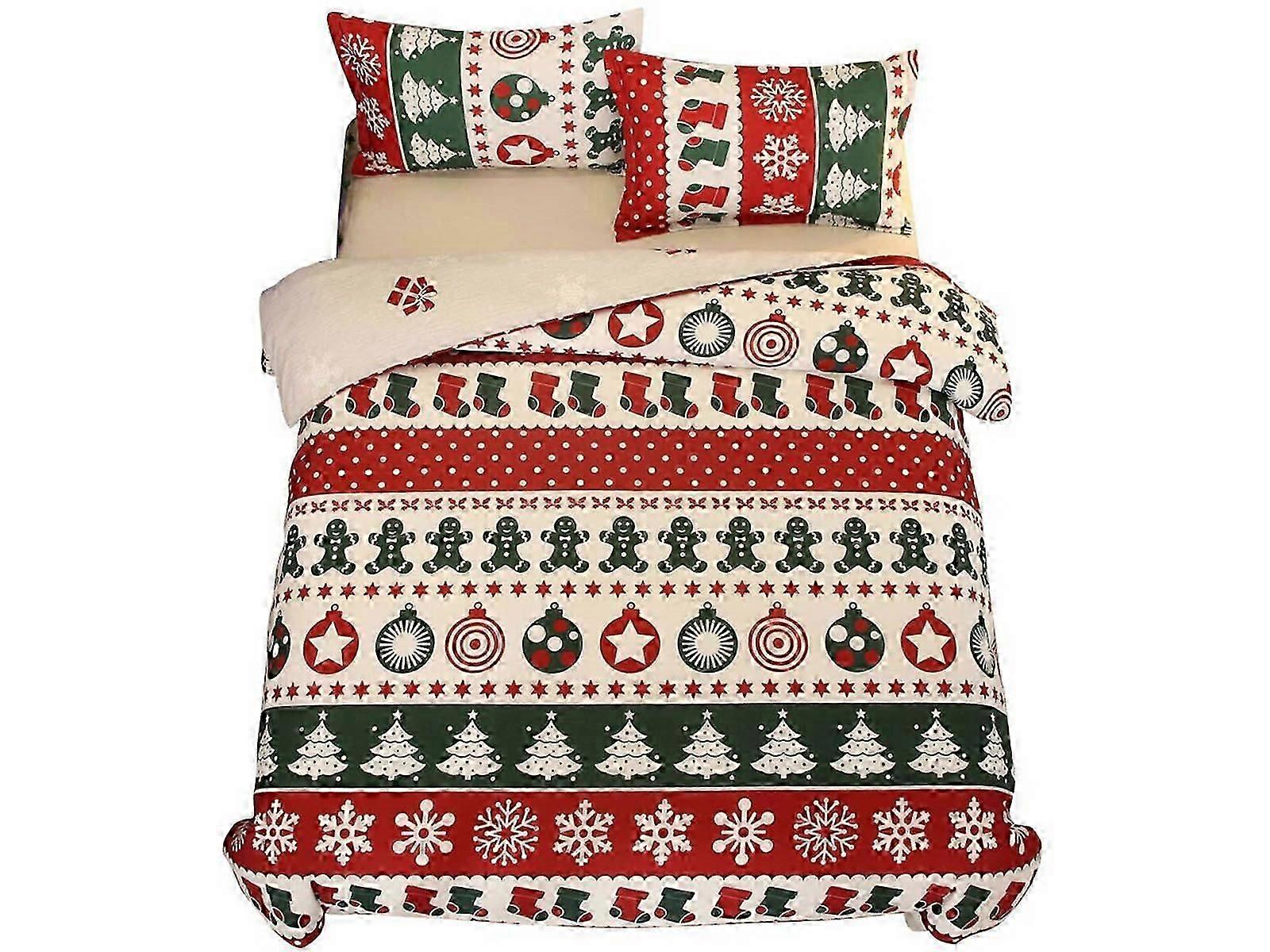 Type: Christmas Bedding Set, Quilt Cover Pillowcases Set, Christmas Bedding Duvet Cover Set, Bedding Set This patchwork Xmas bedding set is easy to coordinate with your festival room decor, adding a dynamic Christmas air to your bedroom Features: Characters of the Christmas season such as Santa Claus, elk embellished with geometric patterns Zipper closure, convenient to put your duvet in and out, easy to remove and wash Easy to clean, you can easily wash this set in the washing machine or by hand Machine washable in cold water and tumble dry at low heat Soft, flat and breathable Great decoration for your bedroom, fill your room with Christmas vibes Specifications: Material: Polyester Size(LxW): Queen: Quilt Cover: 210 x 210cm, Pillowcase: 50 x 75cm Includes 1 x Quilt Cover + 2 x Pillowcase Package Contents: 1 x Bedding Set