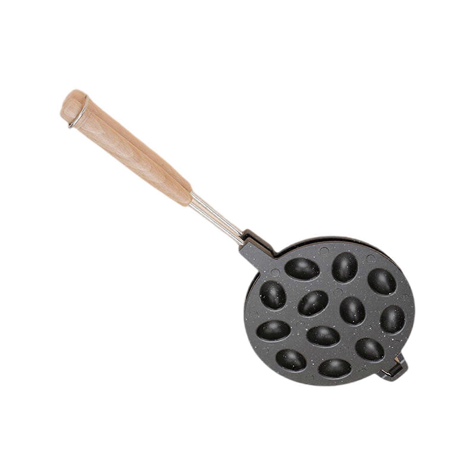 Portable Walnut Cookie Mold 12 Holes Nut Pastry Maker Nonstick Baking Pan with Wood Handle Aluminum Alloy Bakewares Black