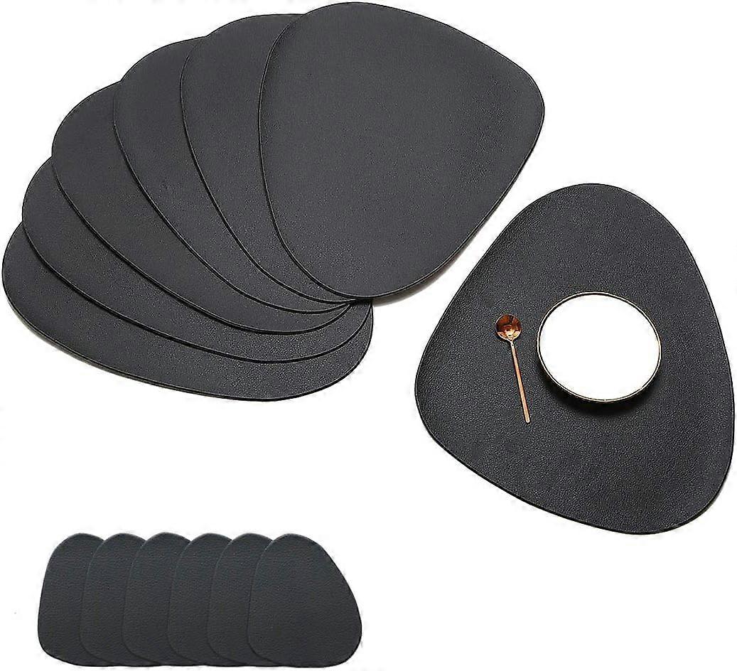 Set of 6 Round Placemats and 6 Coasters, Non-Slip Washable Heat-Resistant PVC Placemats for Kitchen Table, 15 Inch, Black
