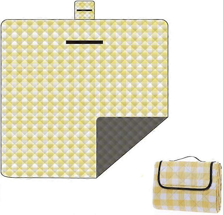Extra Large Picnic Blanket, 79''x79'', Portable Folding Checkered Plaid Mat for Park, Grass, Outdoor, Beach, Camping, Yellow and White