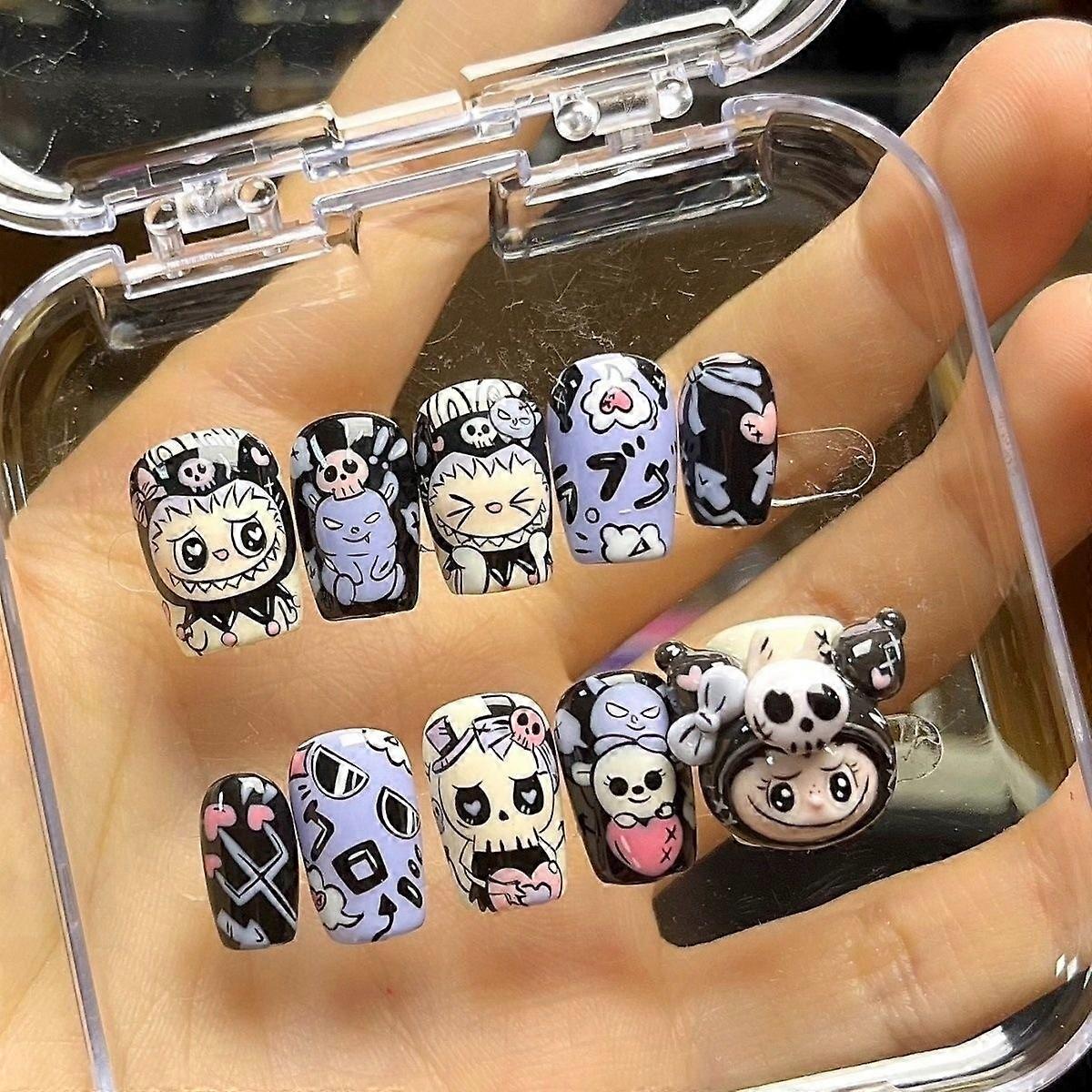 Handmade 3D Labubu Painting False Nail Short Coffin Press on Nails for Nail Art