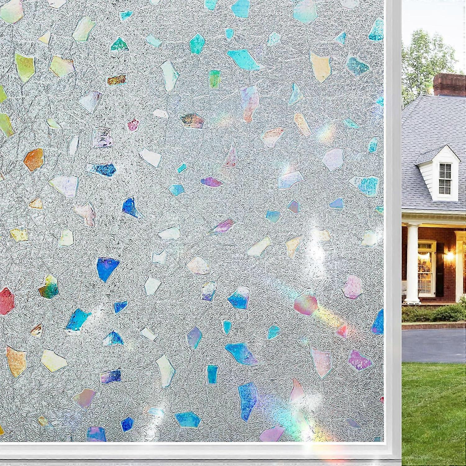[Rainbow Effect Window Film] - The 3D window film itself is actually colorless, and when light passes through it, it becomes a colorful surprise. Experience a range of changing colors with different light sources and decorate the room with subtle colors. This frosted glass film can be applied to any smooth glass. [Privacy Window Film] - If you are more than 50 cm away from the self-adhesive frosted glass film, the window film becomes opaque, others cannot see the inside of the room through the window film, and the room will still receive enough natural light. [Wide Applications] - The film is made of PVC, has a thickness of 0.15 mm, and is clear and bright. It is suitable for all clean glass surfaces and can be applied anywhere you want to block sunlight, such as sliding doors, bedrooms, balconies, bathrooms, and office windows. [Self-Adhesive Glass Film] - Thanks to our environmentally friendly, adhesive-free coating, the mirror film has a strong adhesive power and can be easily adhered to glass surfaces by simply spraying it with water. If necessary, it can be easily removed without leaving any residue. Installation is easy as all necessary accessories are included. [Indoor Sun Protection Films] - Frosted glass window film blocks 60% of UVB rays and protects your room from direct sunlight. It can reduce fading and aging of furniture and have enough brightness through self-adhesive windows with frosted glass film so that plant growth is not affected.