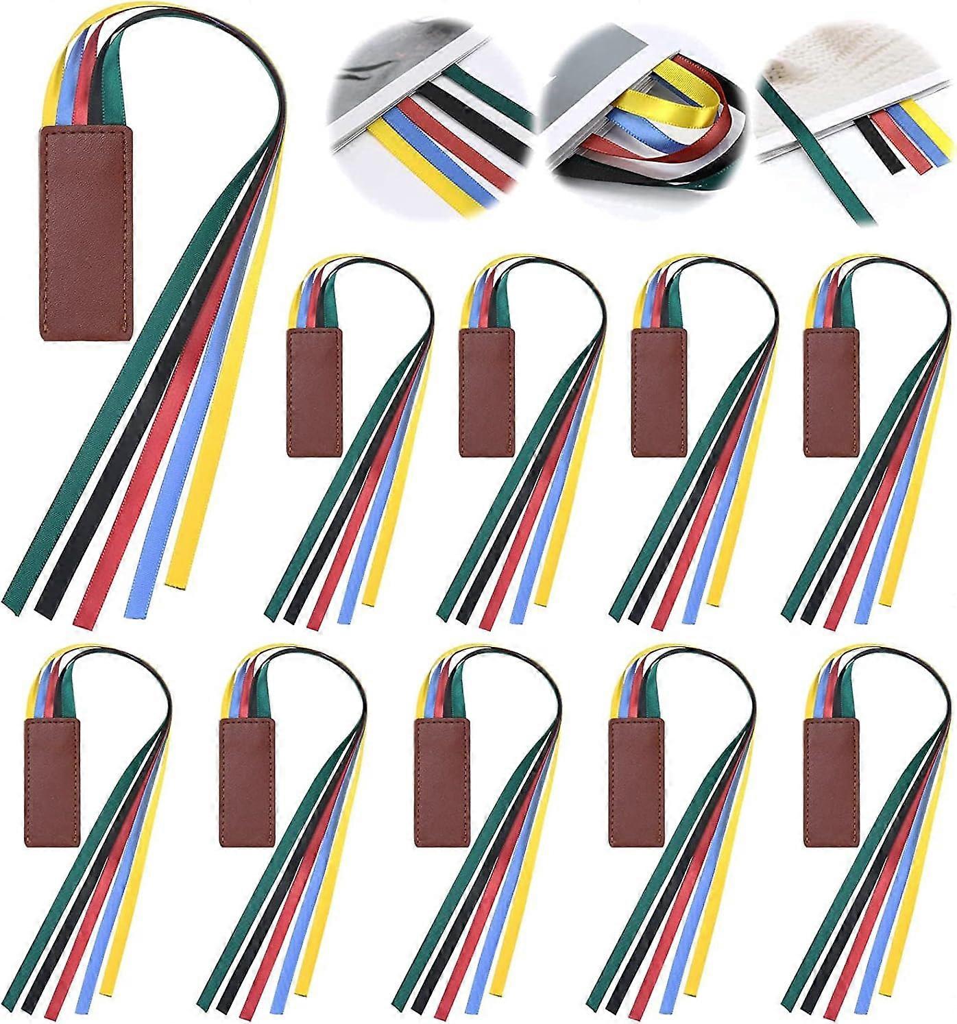 10 Ribbon Bookmarks, Faux Leather Bookmarks with 5 Colored Ribbons, 5-Page Bible Ribbon Bookmarks