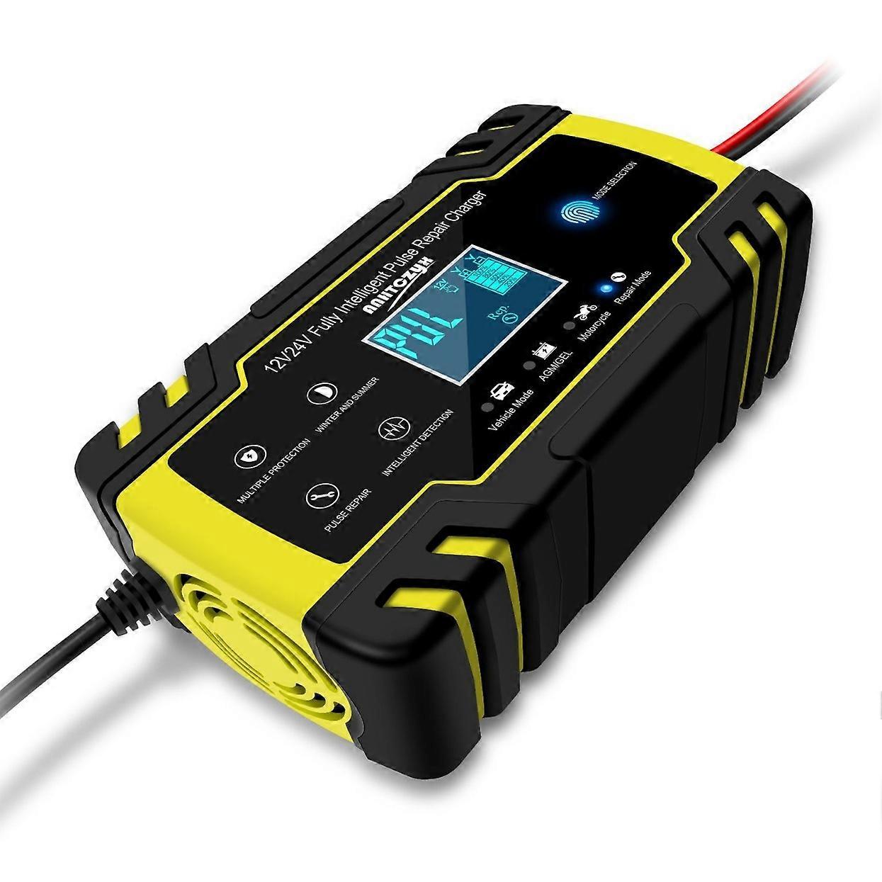 12V/24V 8Amp Automatic Battery Charger with 3-Stage Charging, 6 Modes, LCD Screen, Intelligent Charging, Maintains Car, Motorcycle, Mower Battery