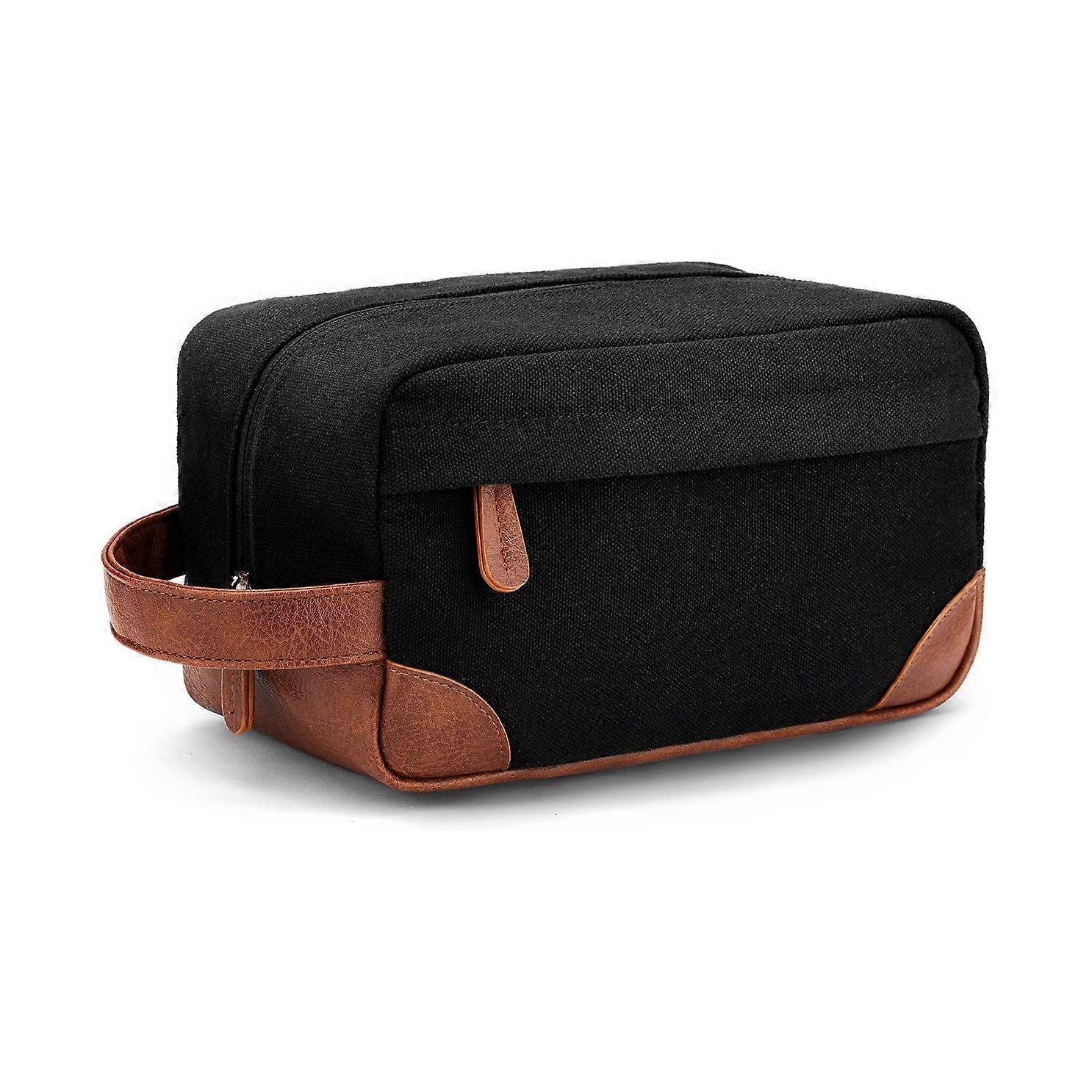 Large Capacity & Organized Compartments: Size 10 x 5 x 5.5 inches. 1 roomy main compartment for storing facial cleanser, electric shaver, travel shampoo and other toiletries. Also has 3 small mesh pockets and 1 long zippered mesh pocket inside to hold all your small toiletries without getting disorganized and easy to find. 1 front zipper pocket provides additional storage with ease. Quality and Convenience. Waterproof Material: The travel toiletry bag is made of strong and durable portable canvas material that has no unpleasant smell. The canvas and PU leather make the bag very well constructed to keep the shape and protect your toiletries from water splashes. Multipurpose Use: Whether you are on a short trip or traveling on business, it is large enough to fit toiletries and make it easy to grab things during the trip. If you want to store other small items and makeup, it can be a great storage pack or cosmetic organizer. This bag is fashionable for storing toiletries in the bathroom and vanity area. Well-designed and functional. Multi-colors: The canvas shaving bag is classic and elegant, we offer different colors for everyone to choose. As a good choice to send to your husband and friends, it has a nice color, size, and quality feeling, even if used for a long time, it is still attractive and holds up well. Smooth SBS zipper and zipper closure. Comfortable handle: The leather handle makes toiletries easier to carry and hang, the leather-reinforced bottom makes it portable. The combination of zipper & zipper ear makes it easy to hold and zip up and down. This toiletry bag is a perfect size that can be packed and put in your suitcase.
