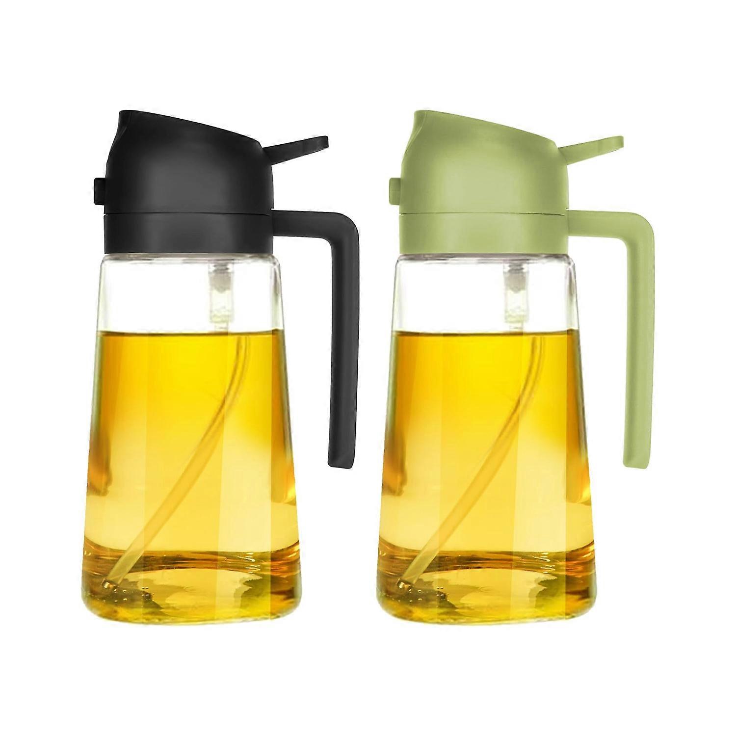 16 oz Oil Dispenser Bottle for Kitchen - 2-in-1 Olive Oil Dispenser and Oil Sprayer - 470 ml Olive Oil Bottle - (Green and Black)