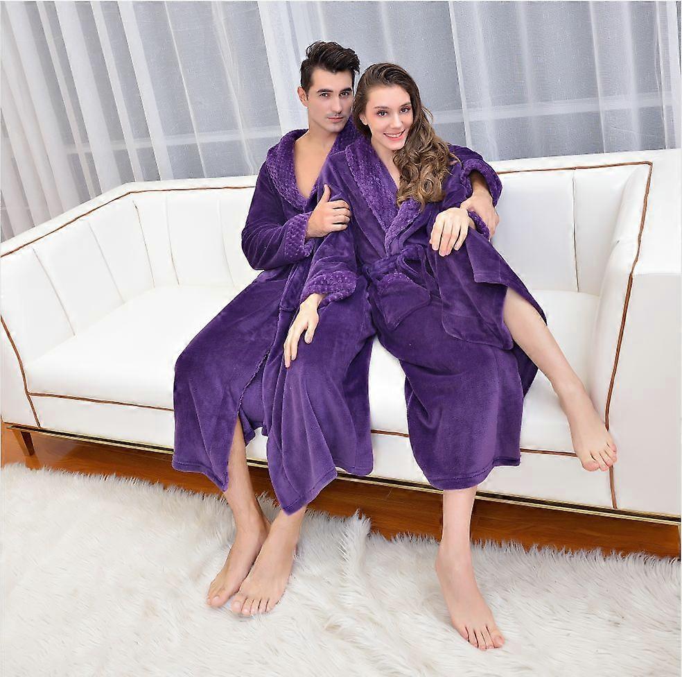 Autumn and winter extra-long bathrobe thickened flannel nightgown men's bathrobe coral velvet bathrobe women's hotel bathrobe (1 piece)