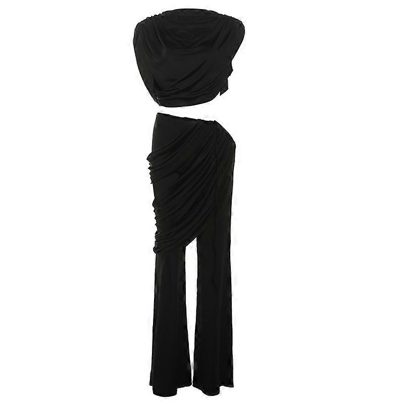 Autumn/Winter Women's Clothing Set: Ruffled Crew Neck T-Shirt, Solid Color, Irregular Flared Trousers