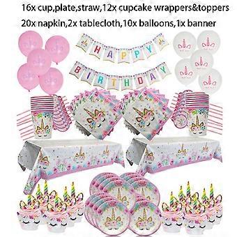 Unicorn Birthday Party Supplies Girls Unicorn Disposable Tableware Set with Plates Cup Napkins Banner Baby Shower Party Supplies
