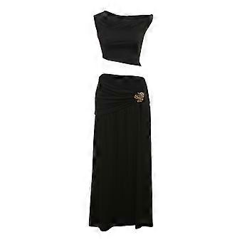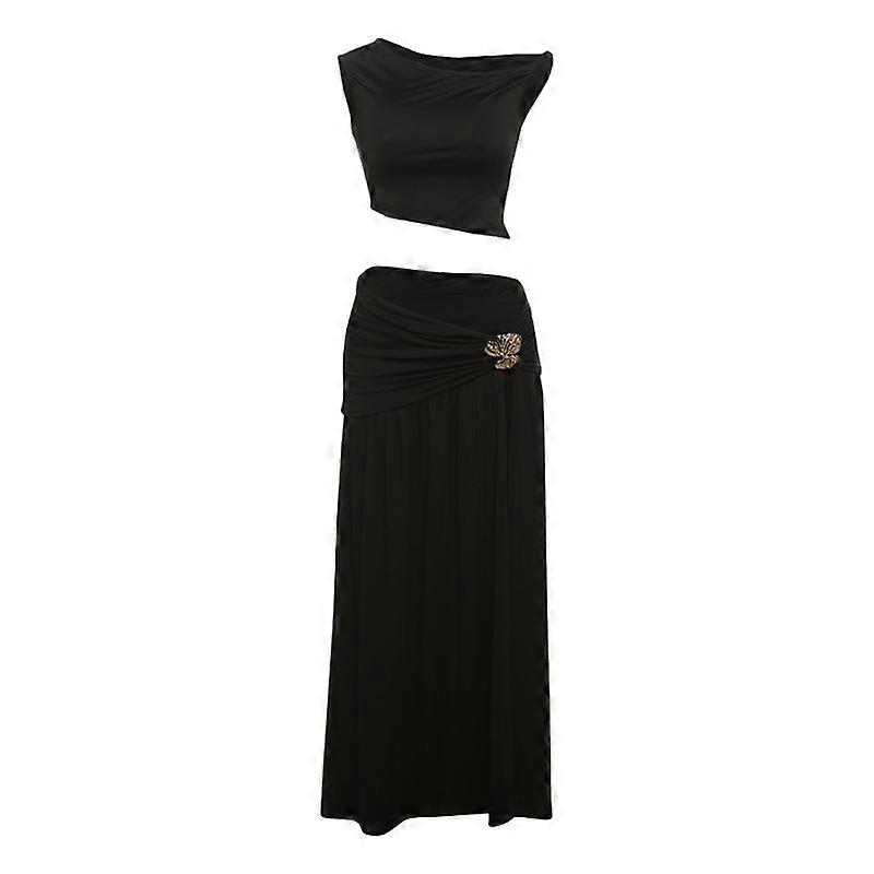 Summer Women's Sexy Off-Shoulder Crop Top Tank Top Slim Fit Side Slit Skirt Set