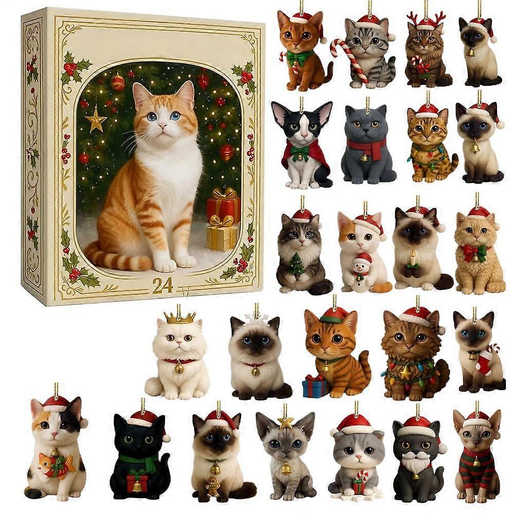 2025 Christmas Advent Calendar 24 Days Cat Pendants 2D Acrylic Hanging Ornaments for Cat Lovers Home Christmas Tree Decorations