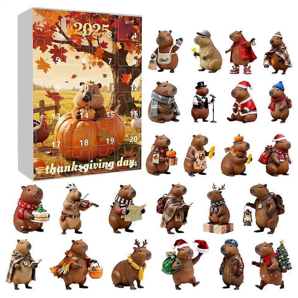 Capybara Christmas Countdown Calendar 24 Days Advent Ornament 2D Acrylic Cute Holiday Decor for Home Tree Kids Teens Adults Gift