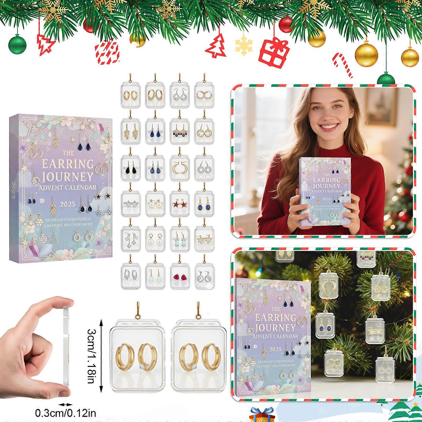 2025 Earring Journey Advent Calendar 2D Acrylic Earrings 24-Day Countdown Blind Box New Year Christmas Gift for Friends