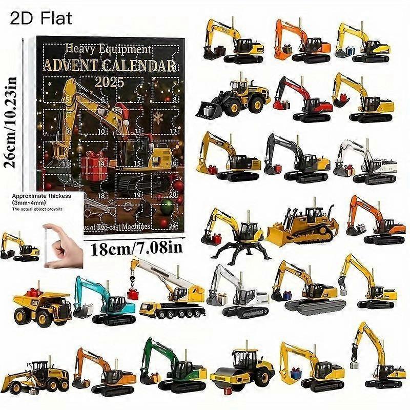 2D Car Advent Calendar 2025 24 Days Acrylic Truck Excavator Pendant Charm Christmas Ornament Countdown Calendar Blind Box Gift