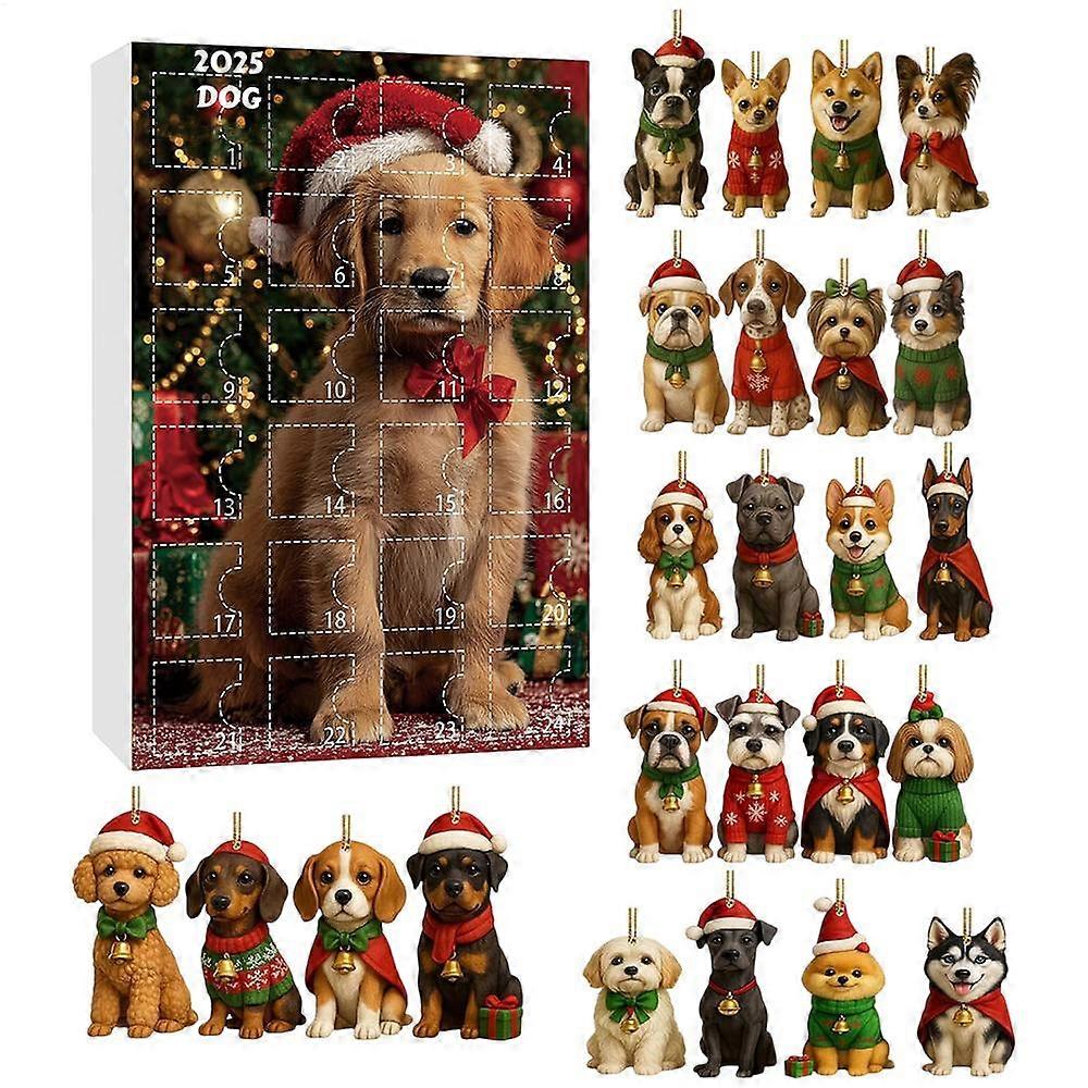 Dog Advent Calendar 24 Days Countdown 2D Acrylic Christmas Ornaments Pet Lover Gift Tree Home Window Car Holiday Decorations