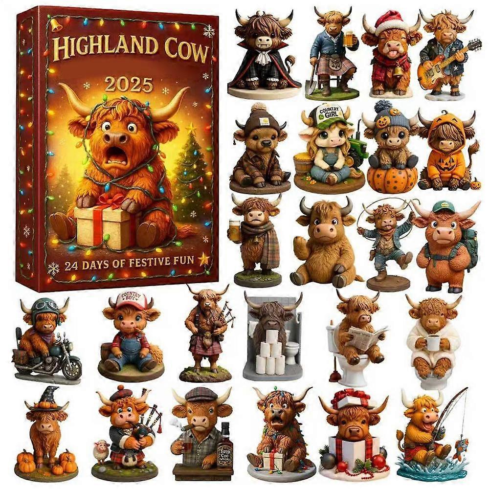 24pcs Christmas Advent Calendar 24 days 3D Rubber Highland Cow Ornaments Christmas Tree Decorations xmas Countdown Gifts