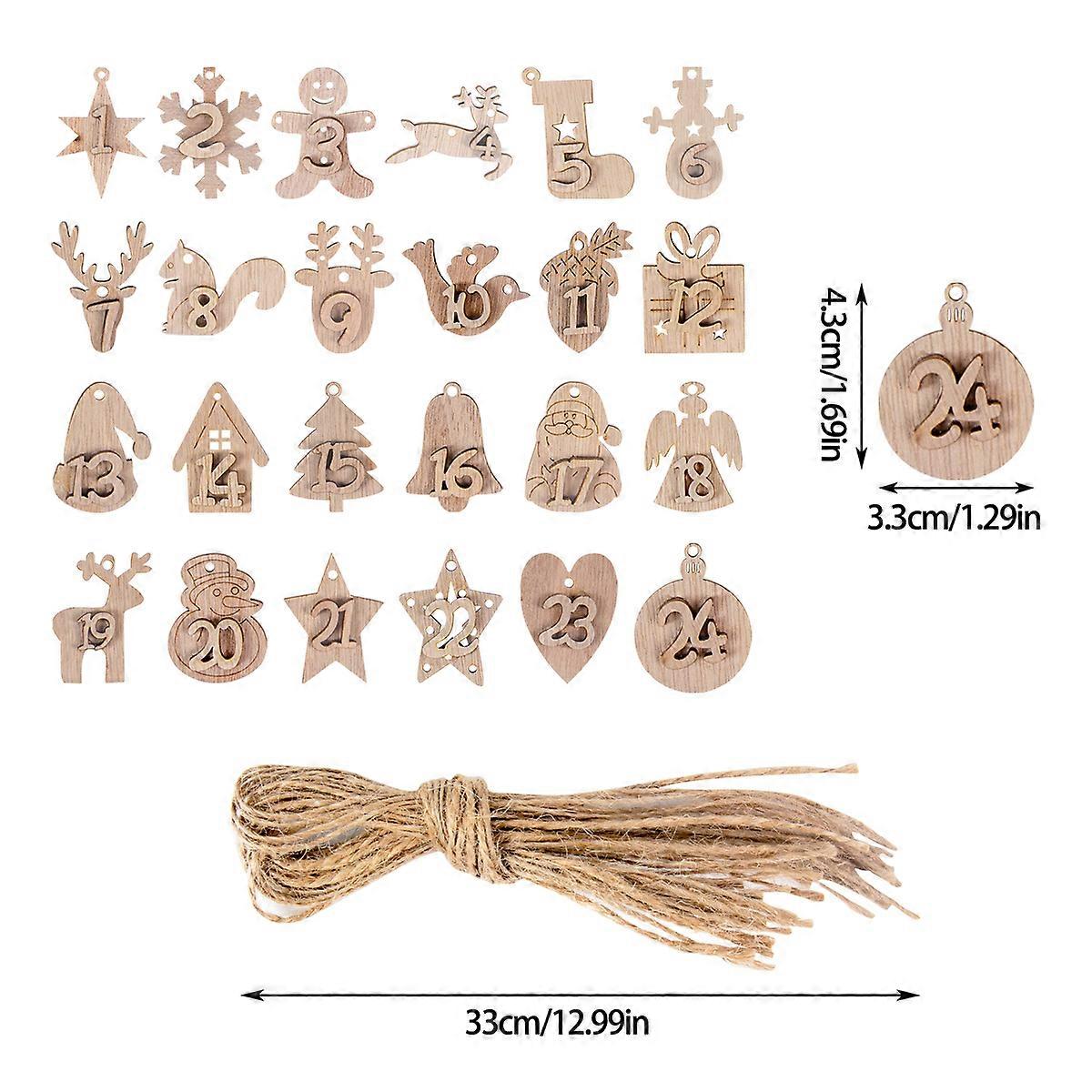 Christmas Advent Calendar Countdown Wooden 1-24 Numbers Hanging Pendant Xmas Tree Gift Tag Christmas New Year Party Decor