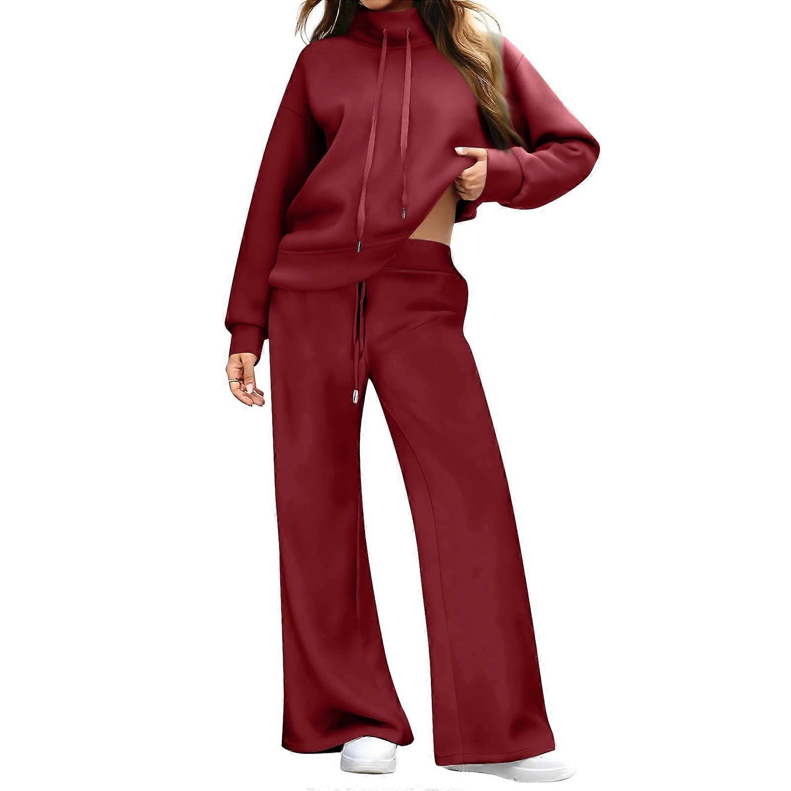 Women's sporty autumn fashion two-piece set Burgundy XL