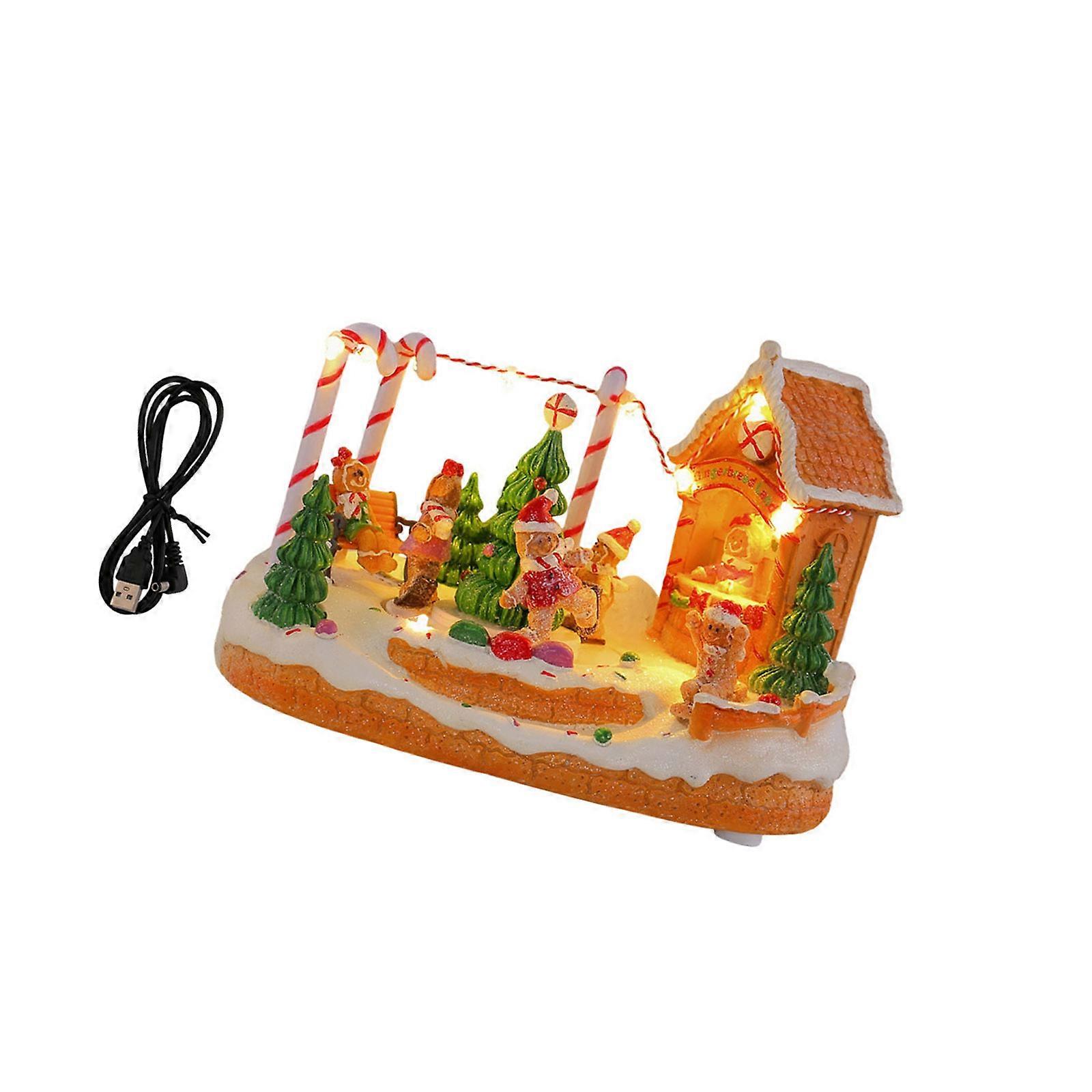 Animated Musical Christmas Gingerbreads Village with Rotating Train,Lighted Christmas Collection Figurine Home Decors Multicolor
