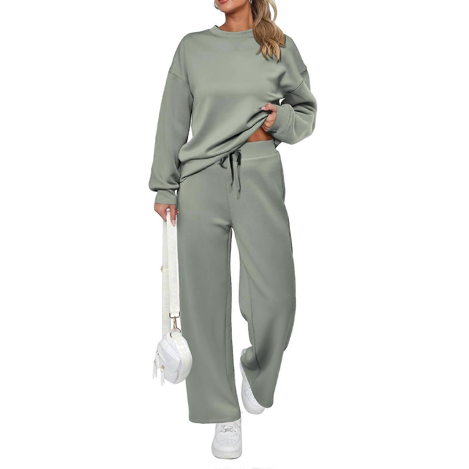 Women's Two-Piece Autumn Sweatshirt and Wide-Leg Pants Home Wear Set light green XL