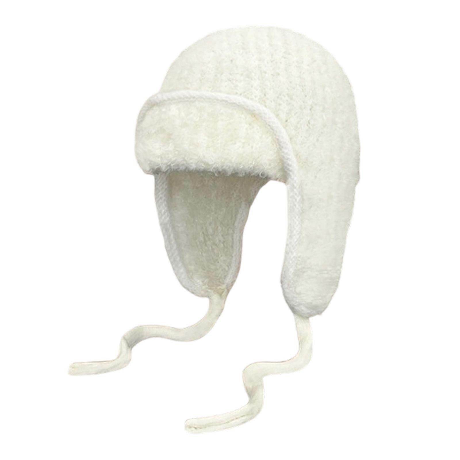 Cold Weather Thermally Ear Protection Cap Windproof Trapper Style Plush Inner Winter Outdoor Activity Hat White