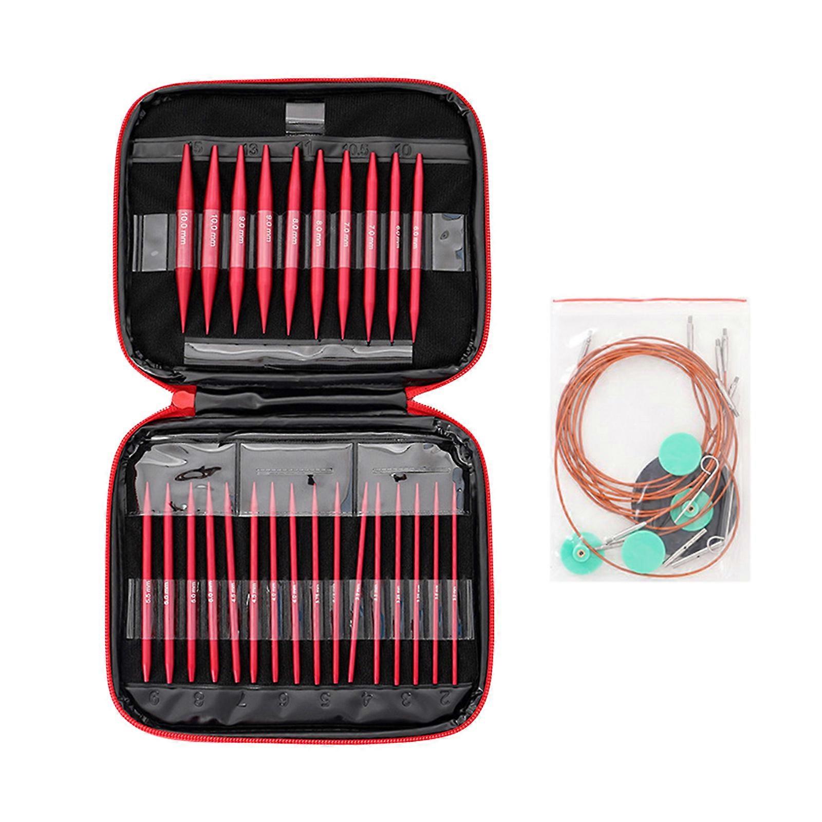 13Pairs Interchangeable Aluminum Circular Knitting Needle Set 3mm-10mm with Leather Case for Beginner Knitting Weaving Multicolor