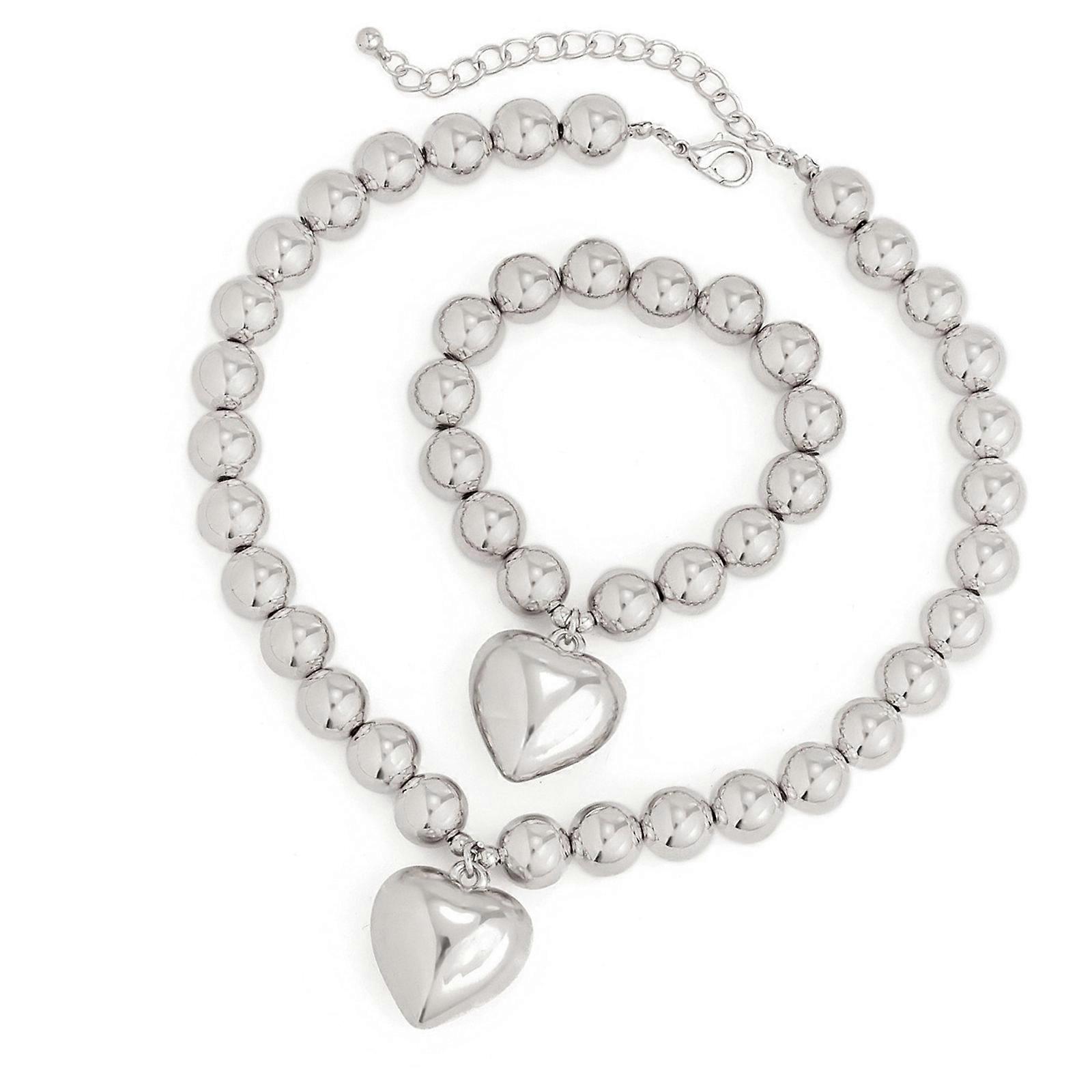 Heart Pendant Bracelet Necklace for Women Wedding Party Jewelry Set Ball Bead Chain Accessories Statement Accessory Multicolor