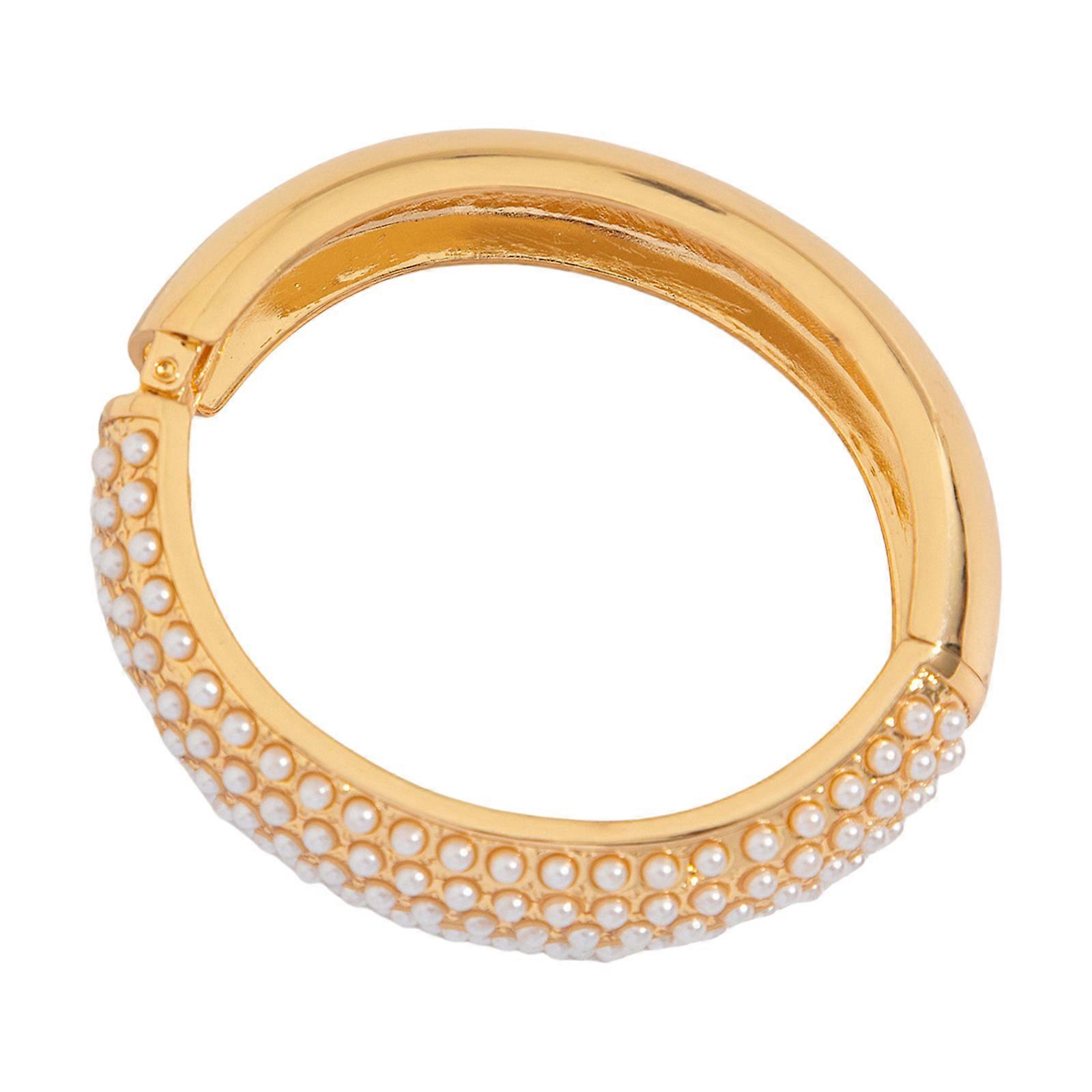 Fashionable Pearls and Metal Bangle Unique Pearls And Metal Open Cuff Bracelet Unique Bangle For Effortless Elegances Multicolor