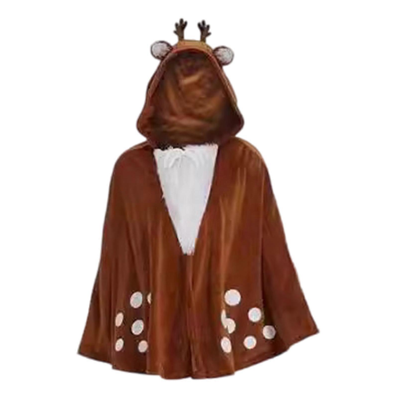 Christmas Reindeer Cloak Female Cloak Lovely Elk Hooded Cape Halloween Cosplay Cape Witch Cloak for Theme Parties M