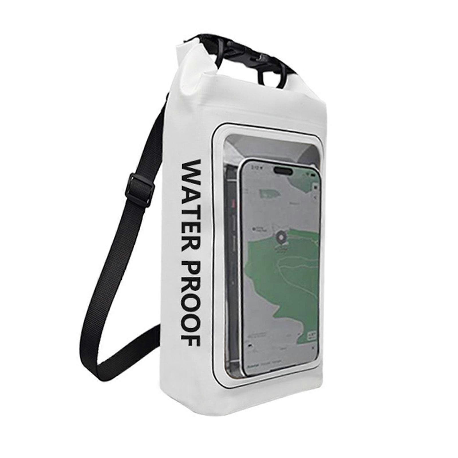 Outdoor Sport 2L Waterproof Crossbody Dry Bag for Keeping Phones Dry Roll Top Phone Pouch Case with Adjustable Strap White