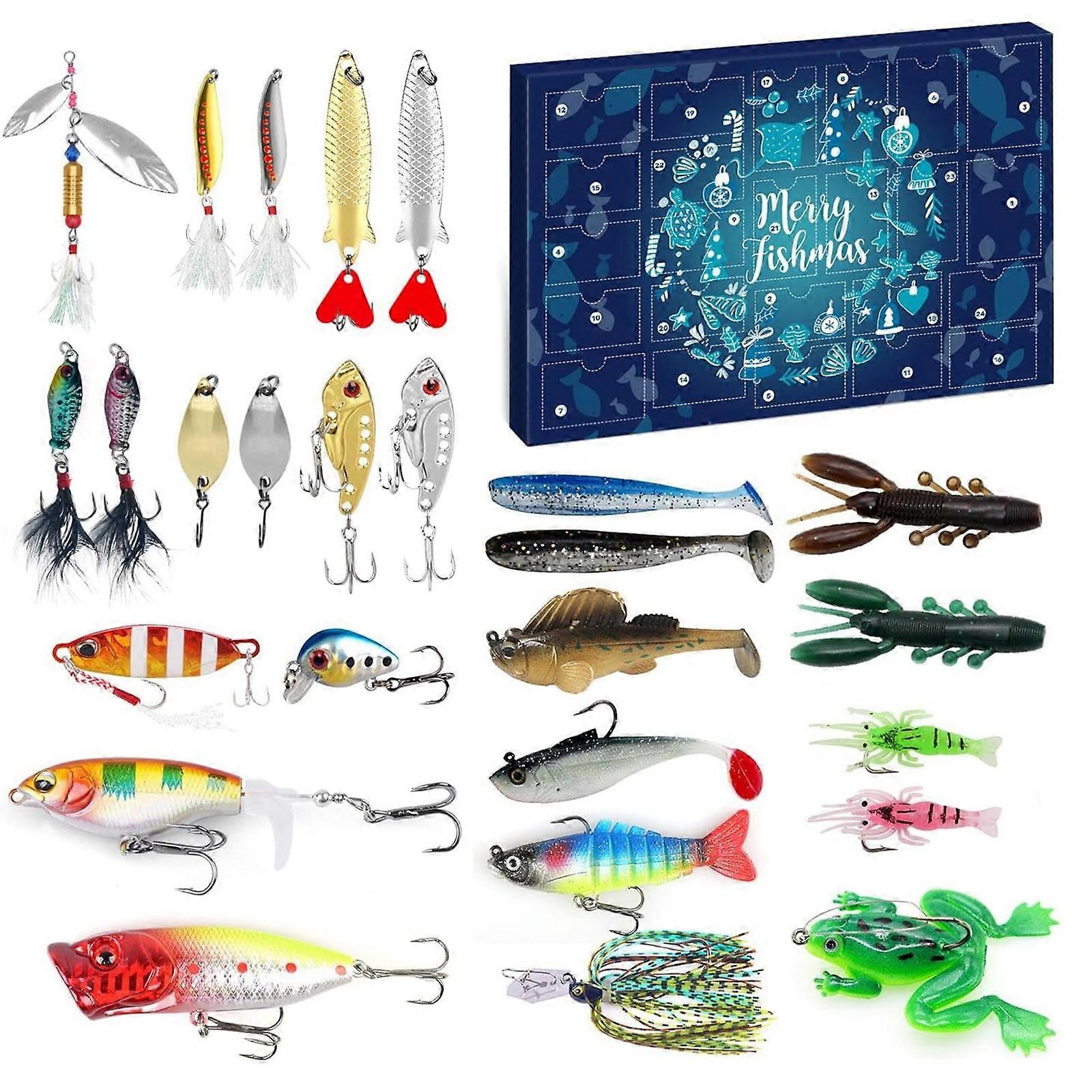 24 Days Countdown Fishing Lures Acrylic Advent Calendar Christmas Themed Present Creative Fishing Tackle Blind Box Multicolor