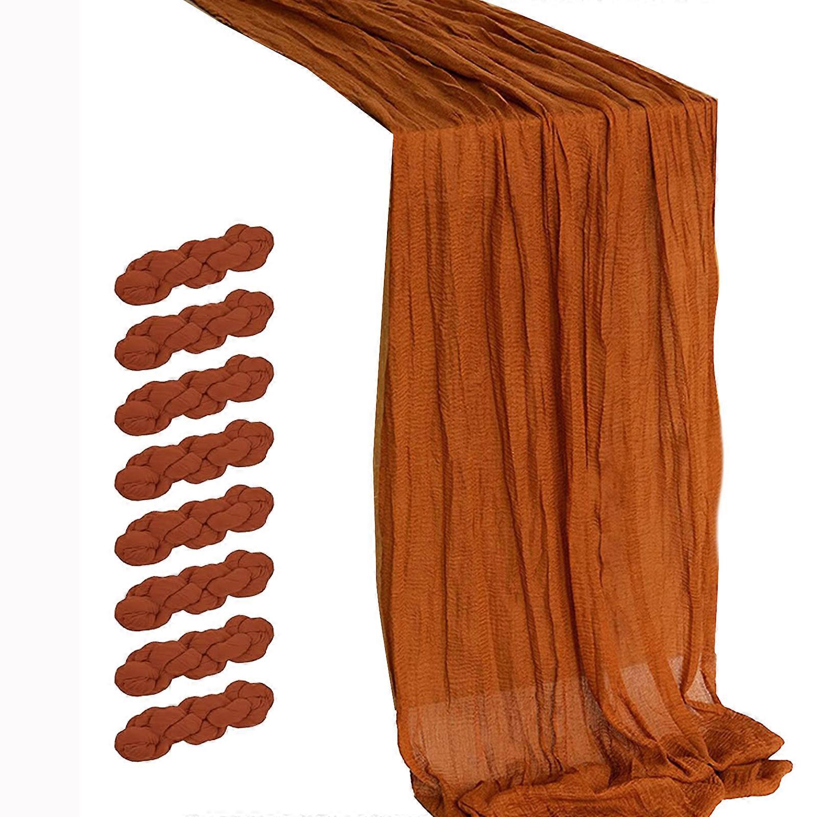 Soft Gauze Table Runner Tablecloth Cheesecloth Table Runners 8PCS for Home Furnishing Wedding Bridal Shower Birthday 90X300cm rust red