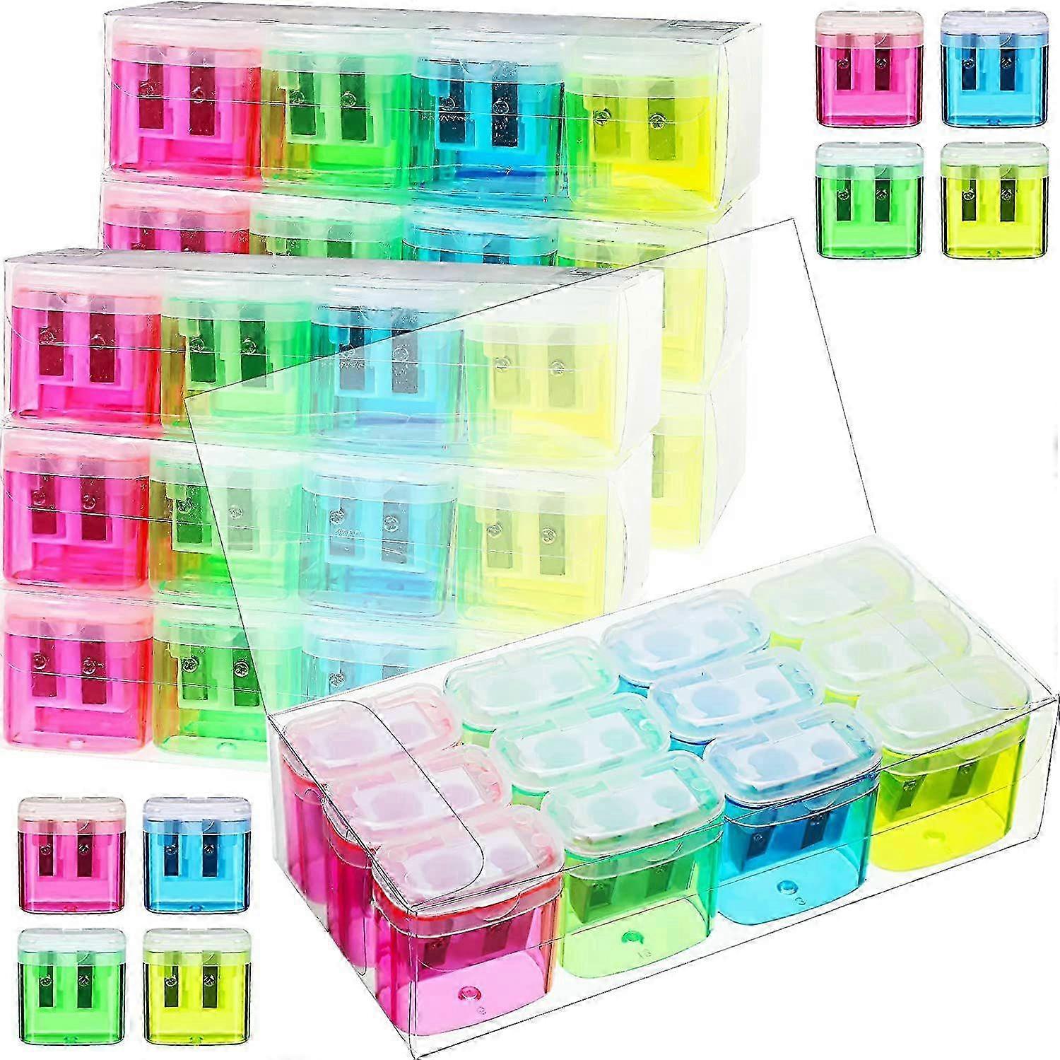 96 Pieces Pencil Sharpeners for Kids Colored Manual Double Hole with Lid Hand Held Edition 1111