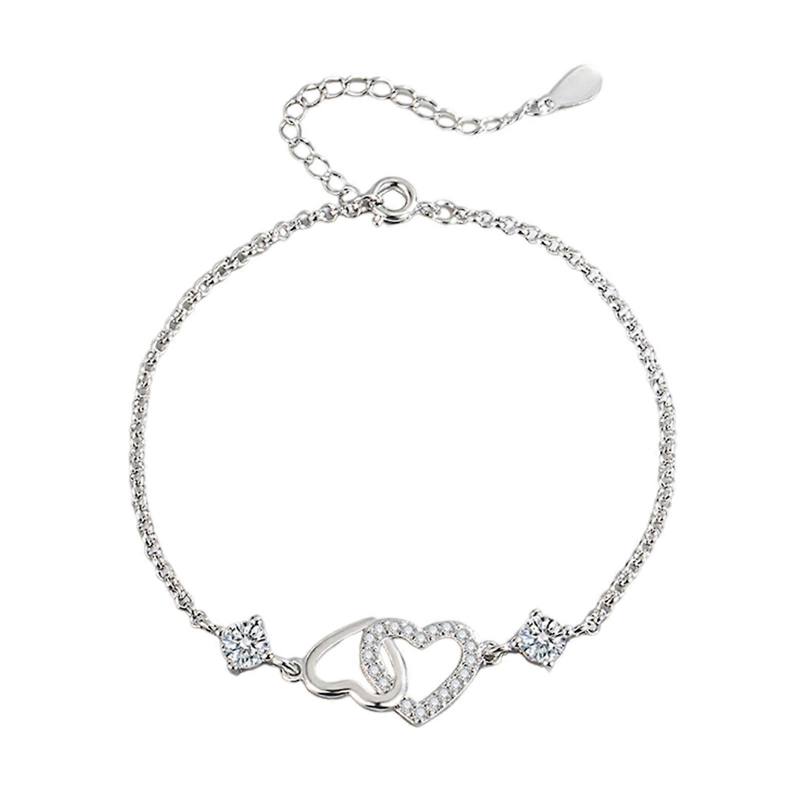 Trendy Double Heart Bracelet With Secure Clasp Handmade Zircon Wristchain Skin Friendly Jewelry Unique Gift For Her Multicolor