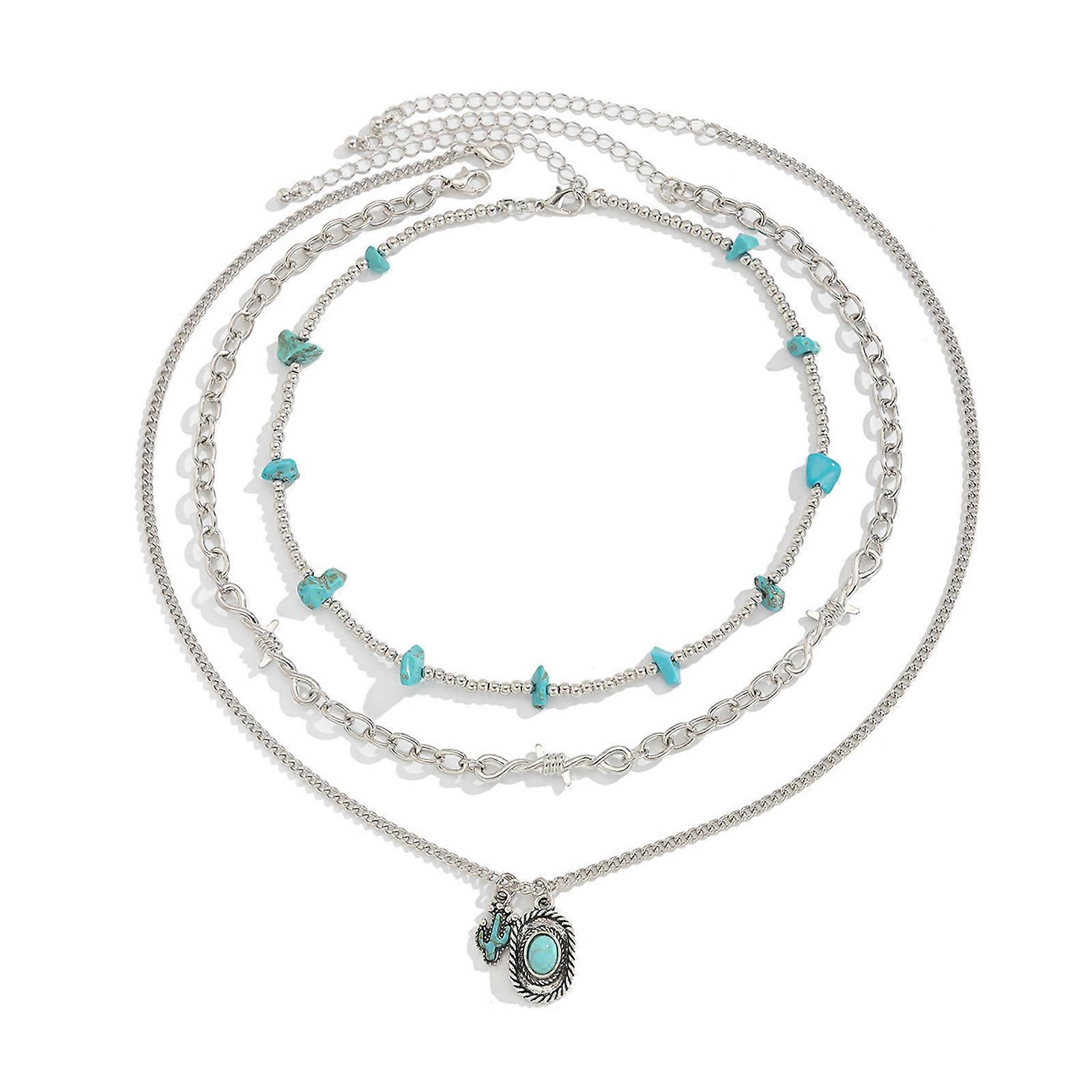 3pcs Layer Turquoise Necklace Set with Cowboy Hat Designs Crafted for Those Who Love Unique Fashion Statements Multicolor
