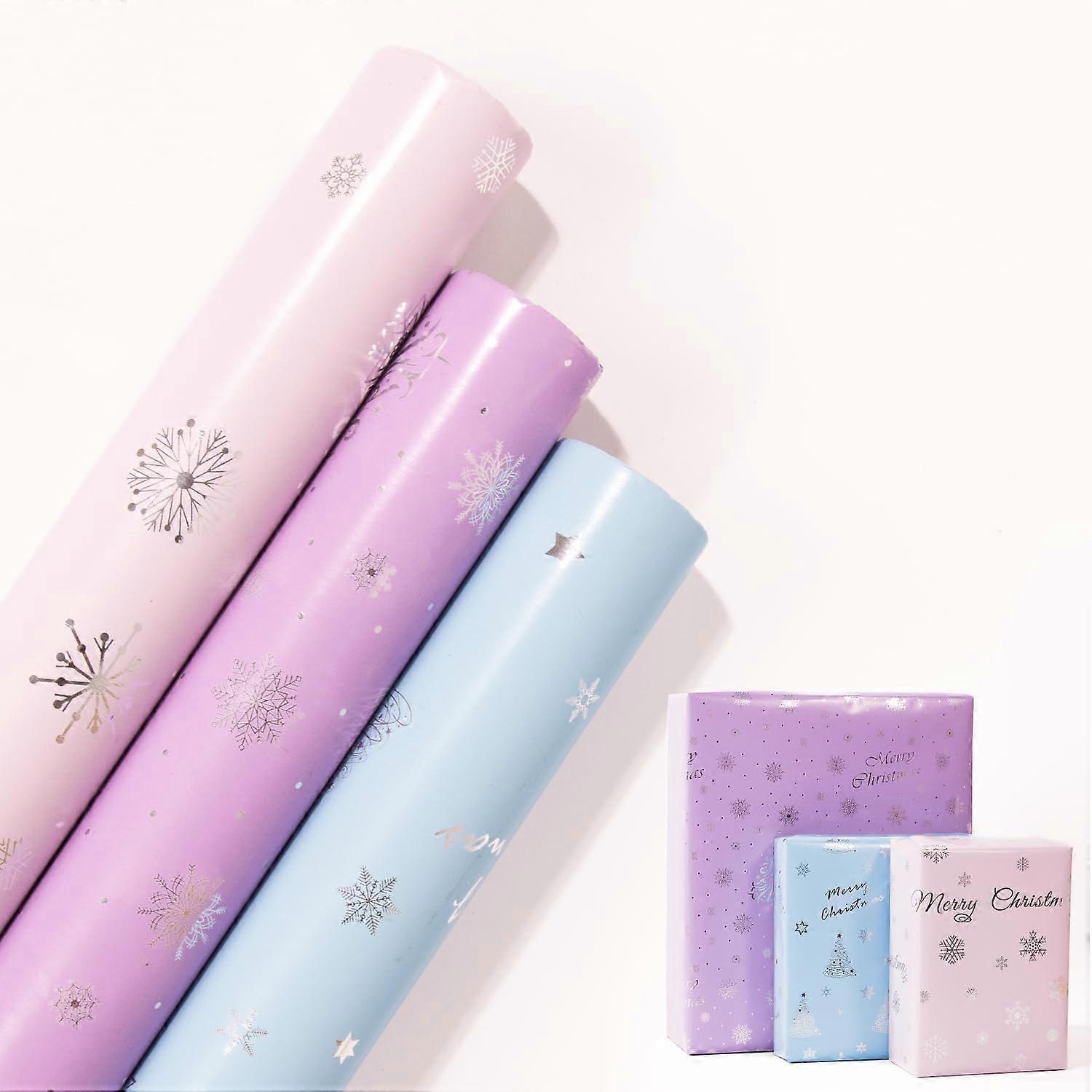 Xmas Wrapping Paper Roll, 3 Rolls 43cm x 3m Xmas Gift Wrapping Paper, Metallic Gift Wrap Paper with Snowflake Xmas Tree Pattens for Xmas, Party, Festi