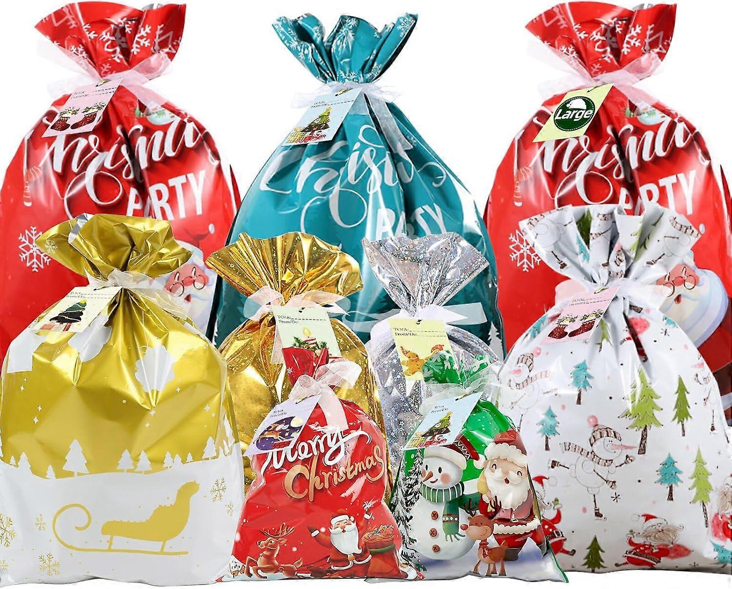 CNMTCCO Xmas Wrapping Gift Bags Large, 20Pcs Xmas String Bags with 30Pcs Tags, Large Medium Small Gift Bags, Xmas Bags for Presents for Xmas Birthday