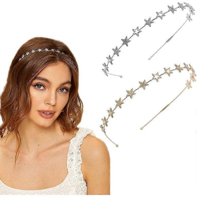 Luxora 2 Pcs Five-pointed Star Headbands, Alloy Headband, Bridal Hair Hoop Wedding Hair Accessories Ornaments For Elegant Women