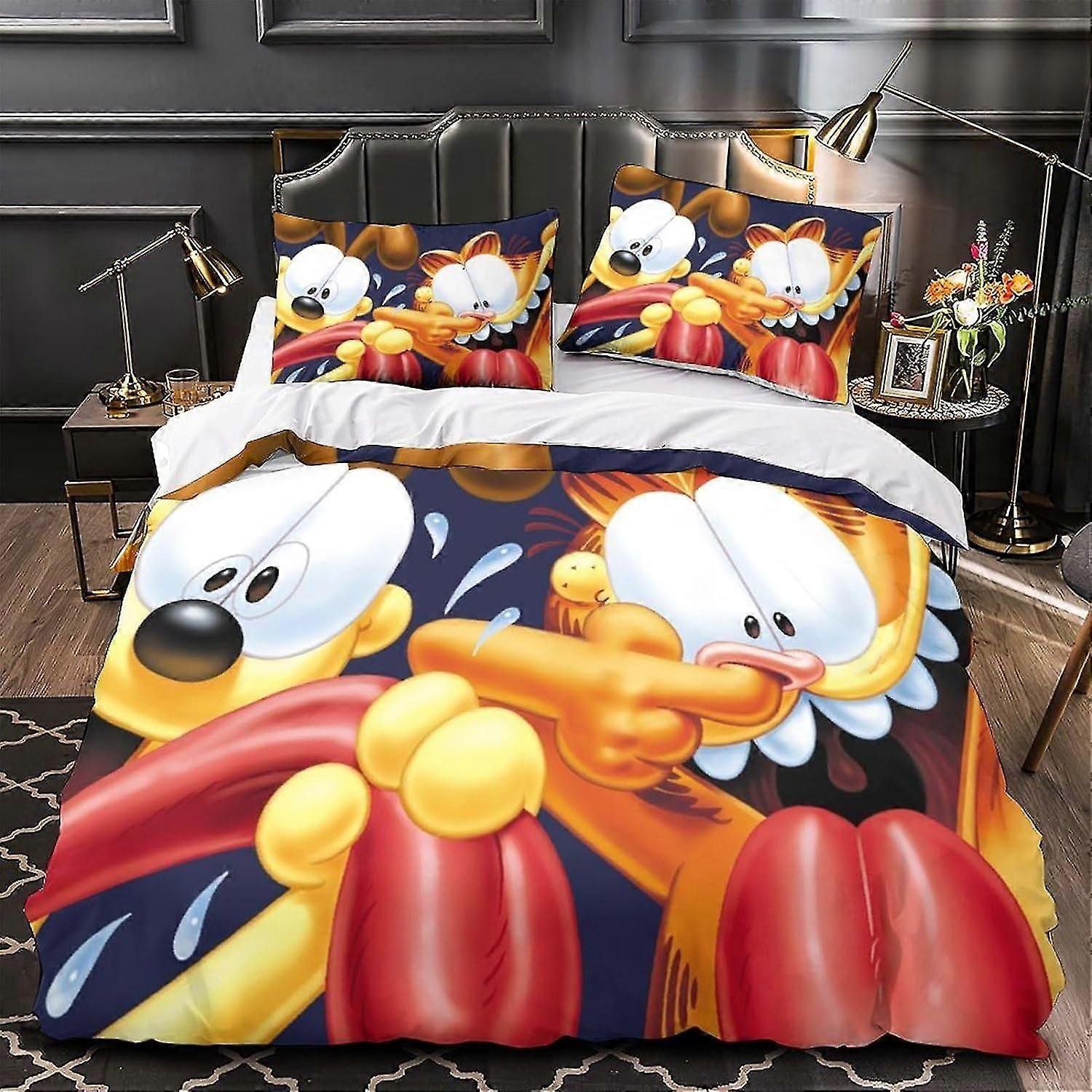 HOUKIG Garfield Quilt Cover Set 3D Bedding Anime Characters Single Duvet Cover Set - Soft Microfibre Duvet Cover with Pillow Case Quilt Cover Set for