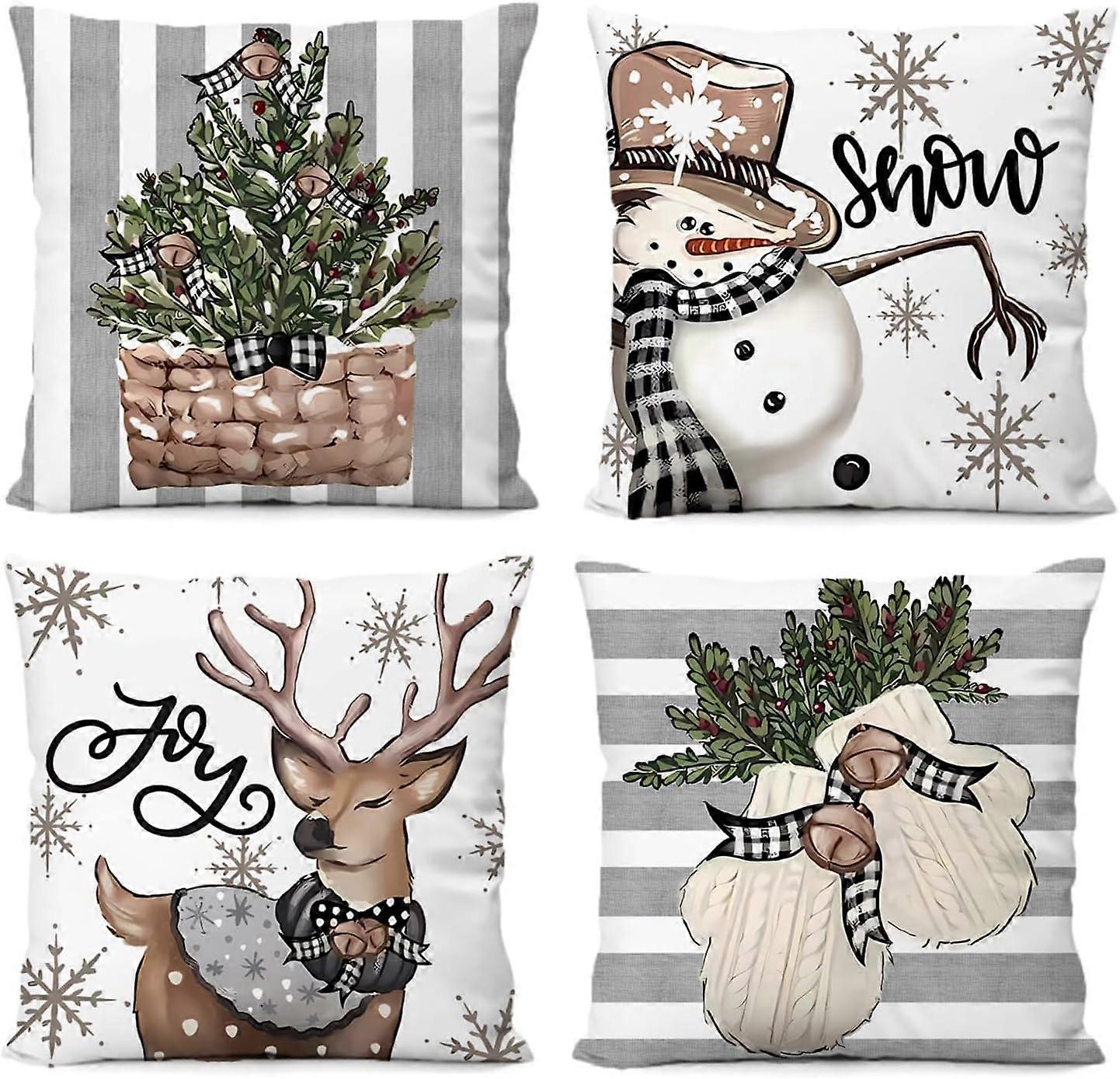Xmas Decors Xmas Cushion Covers 18x18 Inch Grey White 45 x 45cm Set Of 4,Xmas Cushion Covers Stag Snowflake Decors Throw Pillow Cover Party Family ...