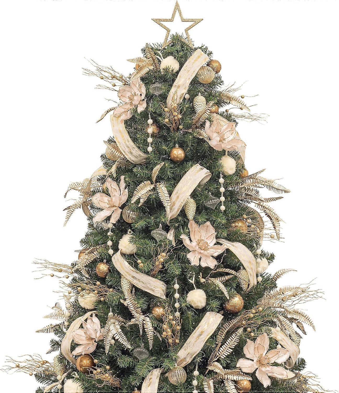Busybee 6ft Xmas Tree with 300 LEDs Lights and Assorted Ornaments Champagne Xmas Decors including Full Artificial Xmas Tree Topper Baubles Flower P...