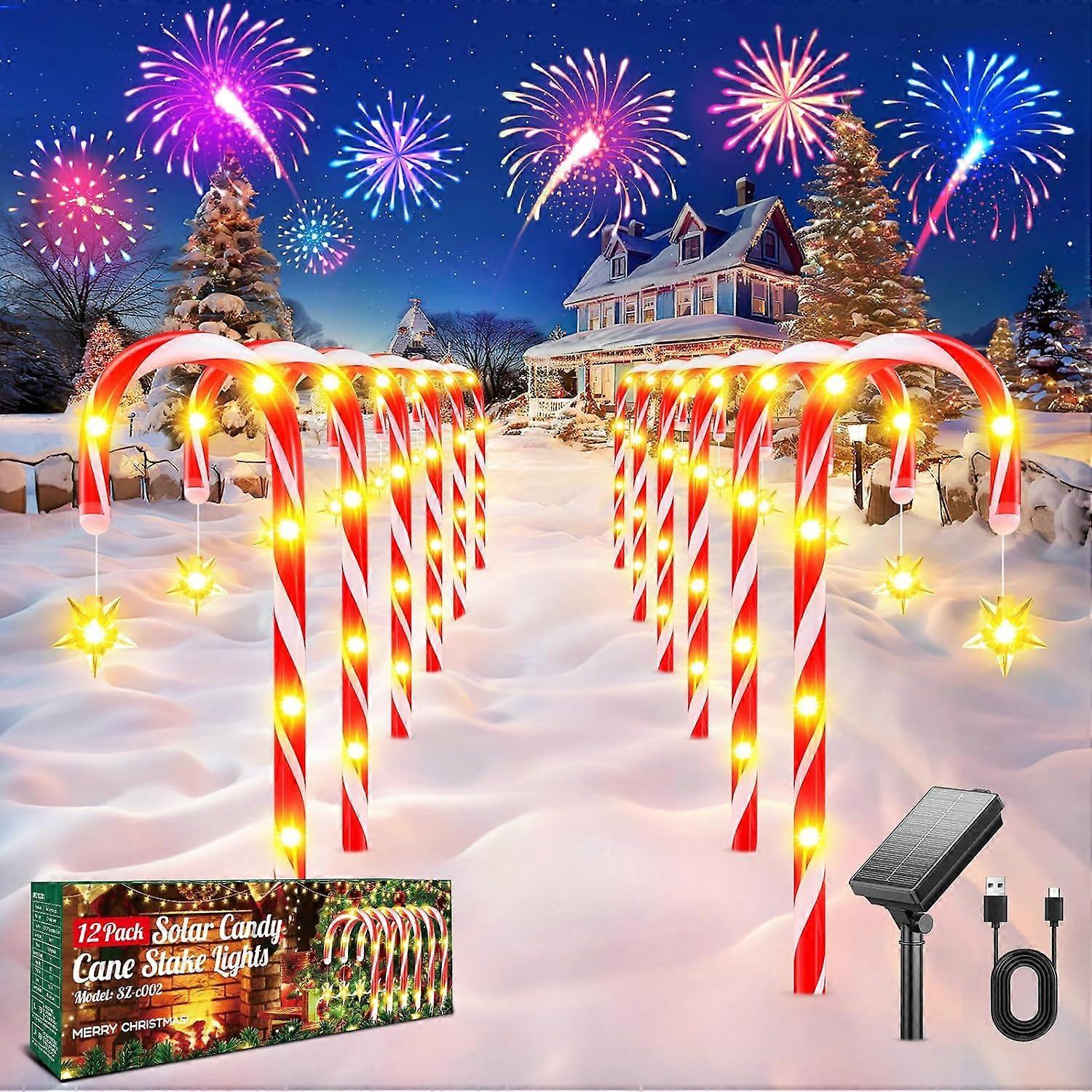 GEARLITE Candy Cane Xmas Outdoor Decors 12 Pack, 2 Charging Modes Candy Cane Lights with 10 Light Modes,IP65 Waterproof Outdoor Xmas Lights for Pat...