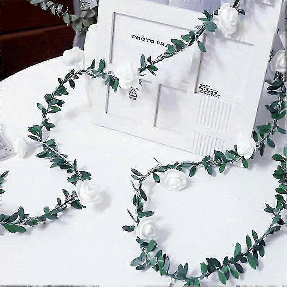 Artificial Rose Garland For Decorative Use, Wedding Background Plant Decor Non-Toxic Fake Rose Vine Decor With Warm White And Sparkling Led Bulbs