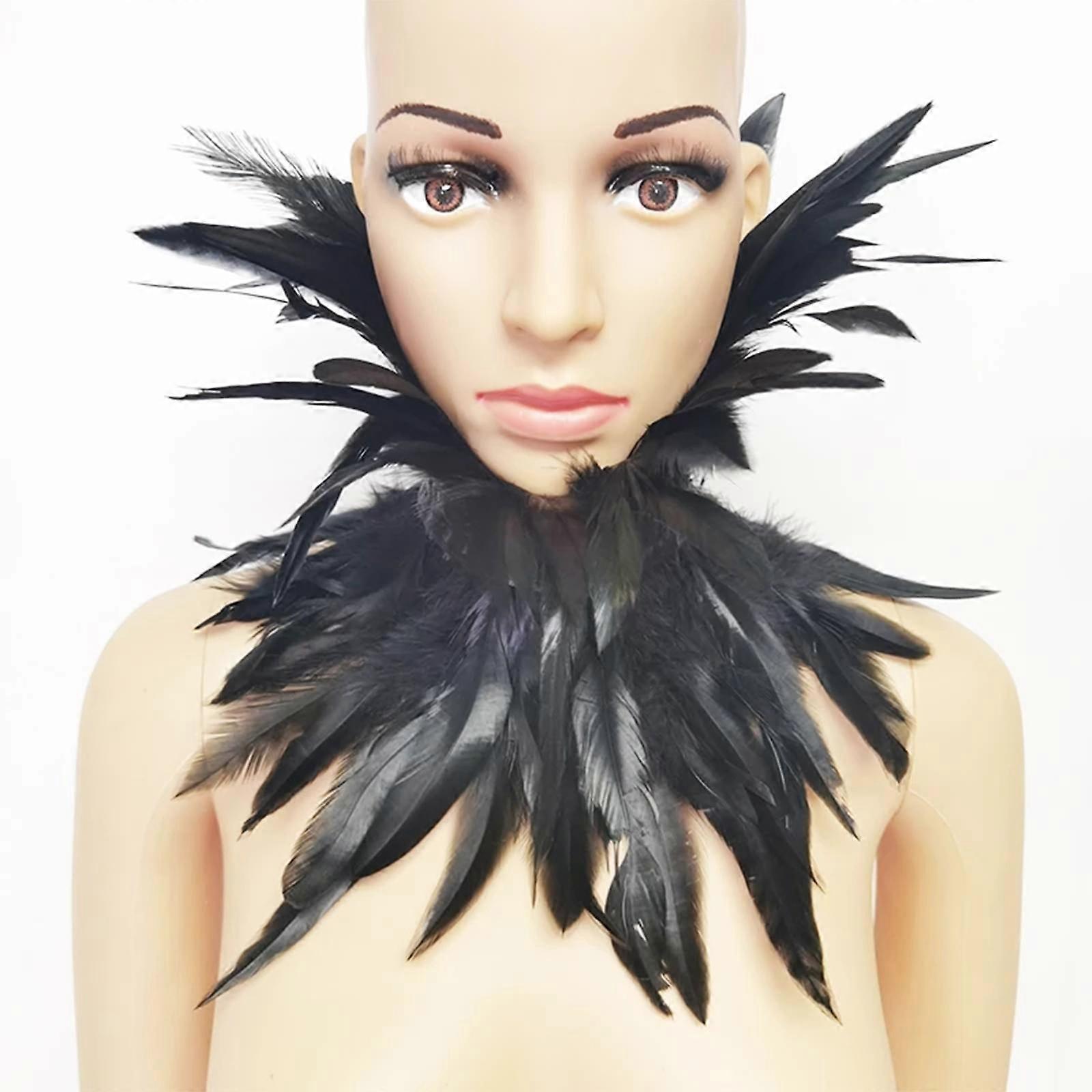 Gothic Victorian Natural Feather Collar Cape Shrug Tie for Halloween Cosplay