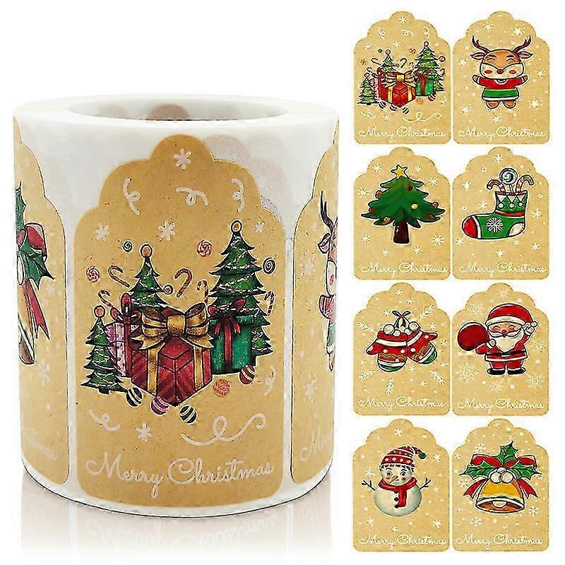 Christmas Gift Box Seal Label, 300 Sheets/Roll Kraft Paper Christmas Stickers for Christmas Gift Decoration with 8 Patterns Exquisite patternsWith 8 different Christmas element patterns such as Santa Claus, snowman, Christmas tree, etc., the appearance is fashionable, which is very attractive for your packaging. Wide usesSuitable for gift wrapping, craft decoration, sealing. Can be used for Christmas parties, cookie bags, bread bags, candy bags, envelopes, gift cards, gift boxes, invitations, crafts, walls etc, suitable for Christmas and New Year. Package includedYou will receive a total of 300 self-adhesive Christmas labels in 8 designs. Each round Christmas sticker is approximately 5*7.5cm which can be used at home, in the kitchen or in the office during the Christmas holidays. Premium MaterialThese Christmas roll stickers are made of high quality coated paper, easy to remove and leave no residue on the surface. Stickers are on thin cardstock but sturdy enough to last. Easy to useAll Christmas stickers with a good adhesive stick firmly to the surface of the object and can be easily removed. Labels with waterproof glue are more durable, they do not fall off easily with high quality glue. Simply peel off and stick anywhere. Very easy to use and easy to remove from most surfaces.