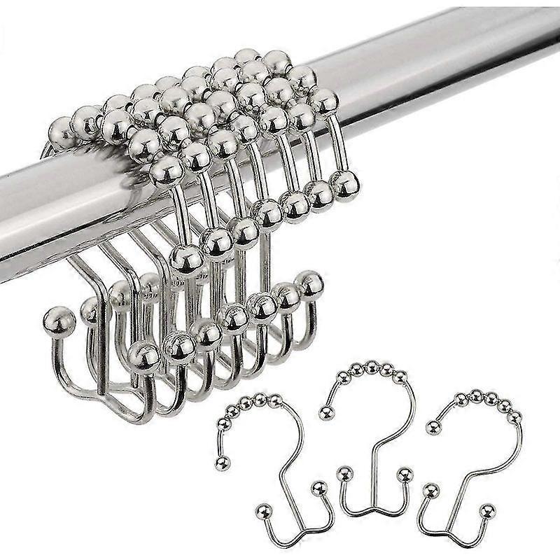 Luxora 24PCS Stainless Steel Shower Curtain Hooks, Metal Double Glide Rings for Bathroom Rods & Curtains, Nickel Finish