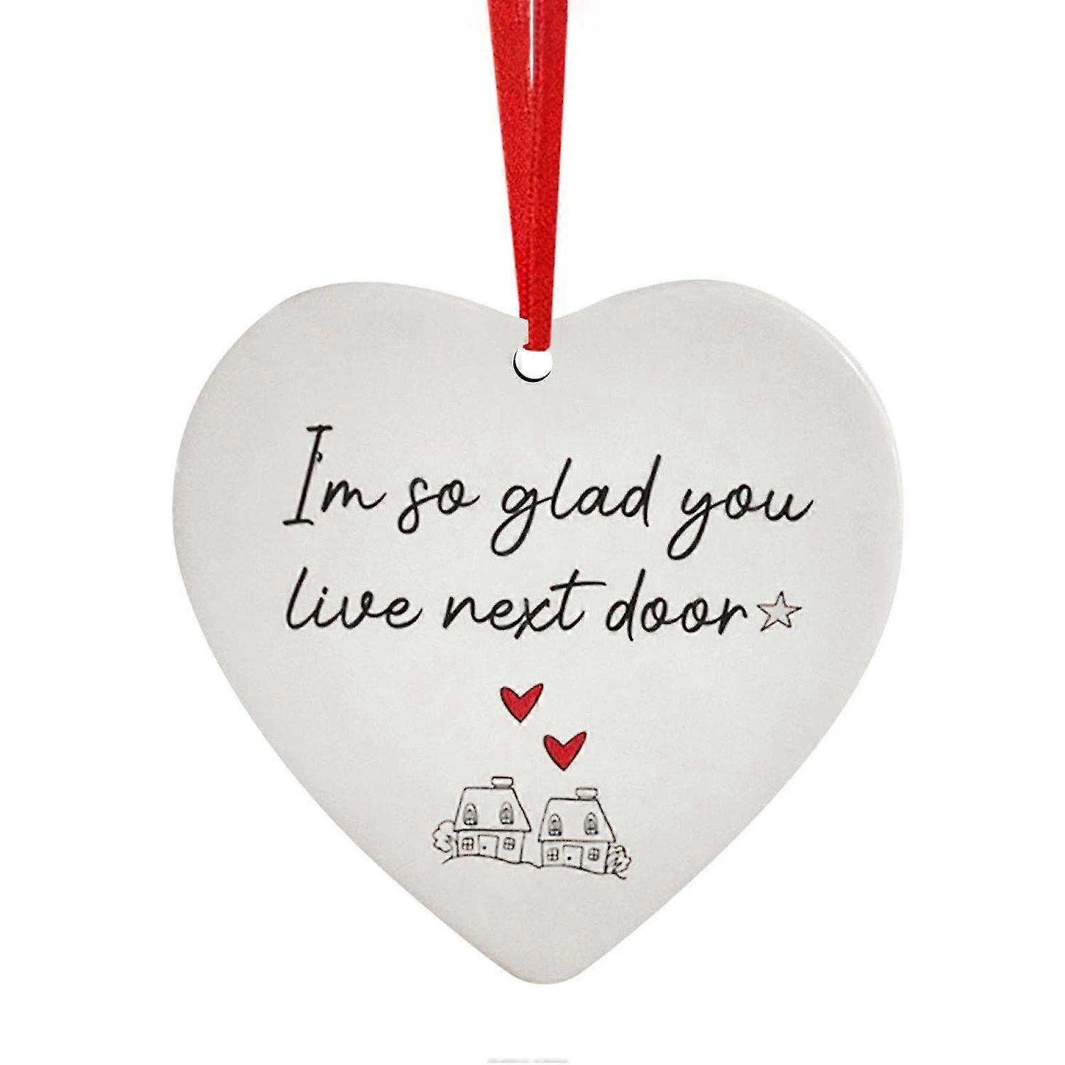 Description: This ornament is characterized by hanging rope design, which enables it to be conveniently hung on the anywhere you want to decorate to be a perfect decoration. With I Wish You Lived Next Door printed design, this ornament can be a perfect gift to someone special to show how much you miss being with them especially on Valentine's Day. Made of high quality acrylic, it is sturdy and compact, not easily broken or deformed, and can serve you for years as decoration. The length of this product is 8cm and width is 8cm. These ornaments are ideal for decorating windows, doors, walls or cars during the holiday season. Item Name: Love Heart Ornament Material: Acrylic Features: Decorative, Fine Workmanship, Festival Prop Size Details: L: 8cm or 3.15", W: 8cm or 3.15"(Approx.) Notes: Due to the light and screen setting difference, the item's color may be slightly different from the pictures. Please allow slight dimension difference due to different manual measurement. Package Includes: 1 x Love Heart Ornament