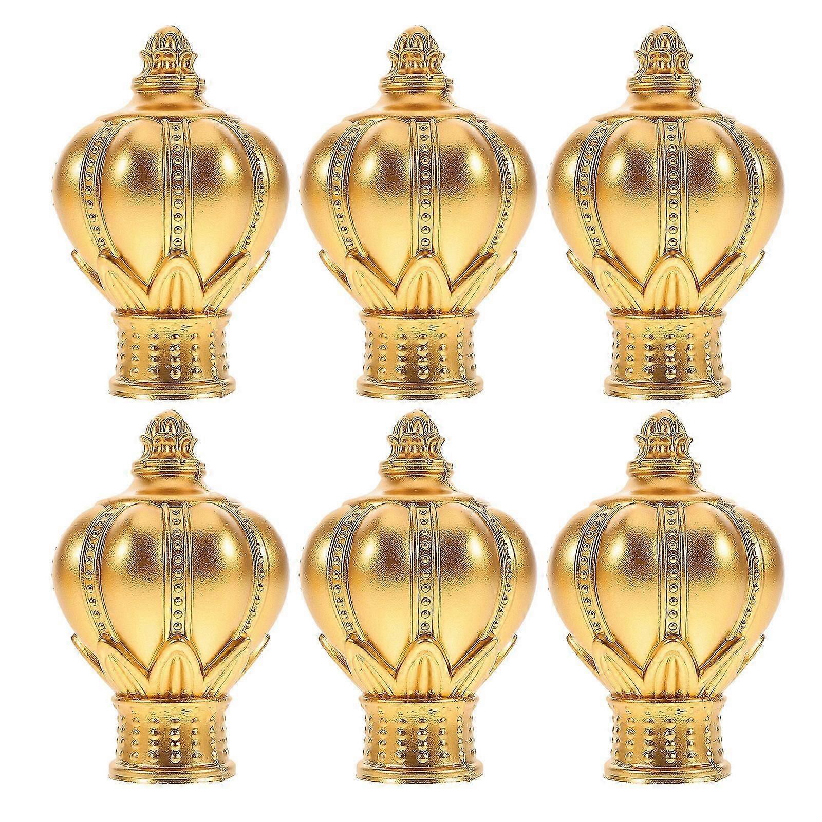 Acrylic curtain rod finials, crown shape, modern design, gold, 10.00 x 7.00 x 3.50 cm, for added curtain stability, 6 units [D] Gold